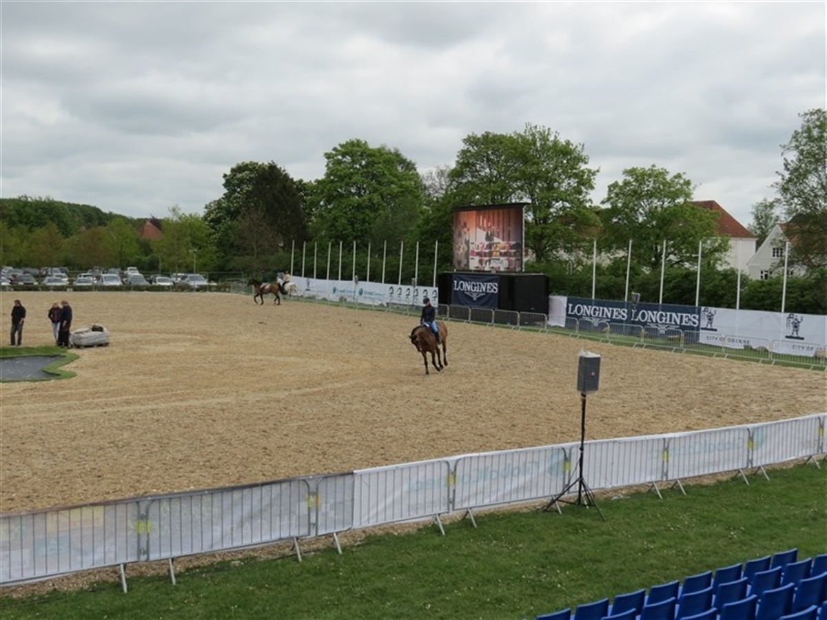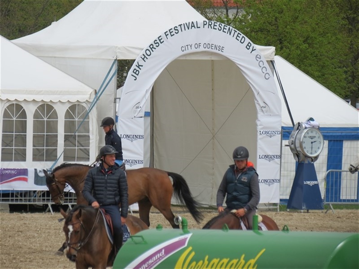 De første ryttere rider nu rundt på banerne, og alle heste skal være på pladsen, før dyrlægetjekket klæokken 17 - og før den første klasse går løs i morgen tidlig.