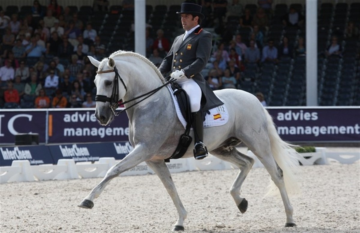 Claudio Castilla Ruiz's skimlede hingst blev opereret i fredags på hesteklinikken i Jerez de le Frontera men døde lørdag morgen. Den 12-årige lusitano-hingst e. Musico de Mv/Neptune var opdrættet og ejet af Manuel Vidrié og var under Castilla Ruiz på det spanske landshold tre år i træk og har konkurreret ved EM 2009, VM 2010 og EM 2011. Ekvipagen vandt sølv ved det spanske mesterskabet i 2008 og vandt Grand Prix og Special det international dressurstævne i Pompadour, Frankrig i 2010. Kilde: Top Iberian.