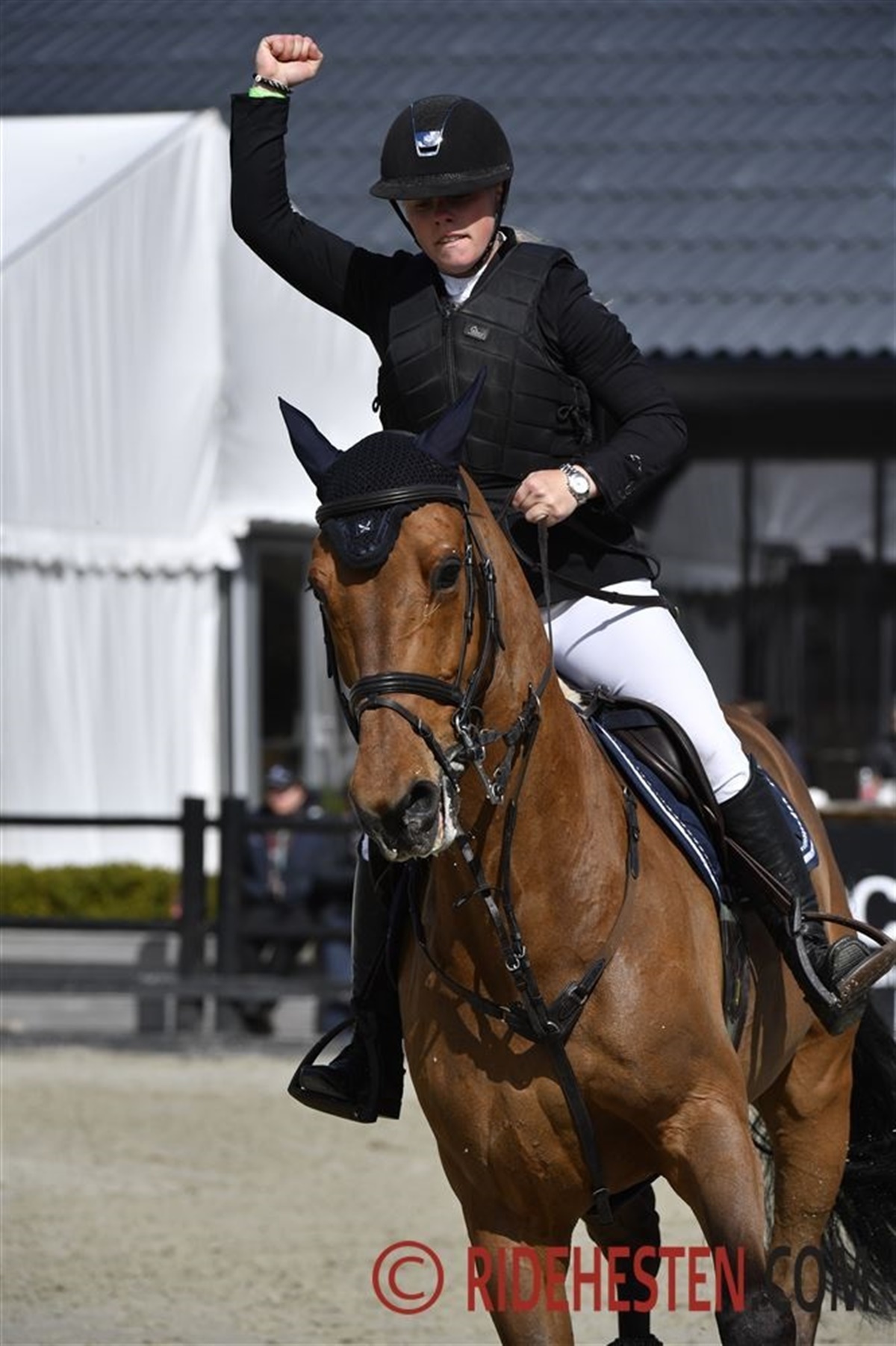 Hun avancerede til føring i klassen efter samtlige fire, fejlfrie ryttere fik nedslag i dagens springning. Benedikte Rie Truelsen er avanceret adskillige pladser i stillingen, da hun supperede sine fire fejl fra 1. afdeling med en 0 runde i dag. Christina Nielsen, der var fejlfri i 1. afdeling fik et nedslag i dag, men er fortsat med i topkampen.