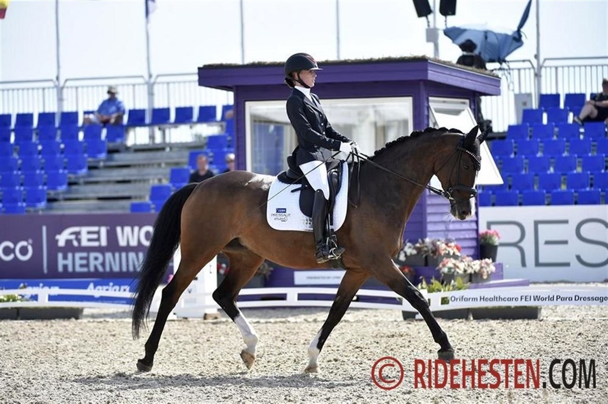 Det var den 56-årige Pia Wulff Jelstrups første internationale mesterskab. Hun har sclerose og begyndte først at ride parastævner i 2021, men siden da er det gået stærkt, og hun kom hurtigt på landsholdet. Nu har hun prøvet at repræsentere Danmark til et internationalt mesterskab; og så endda PL.