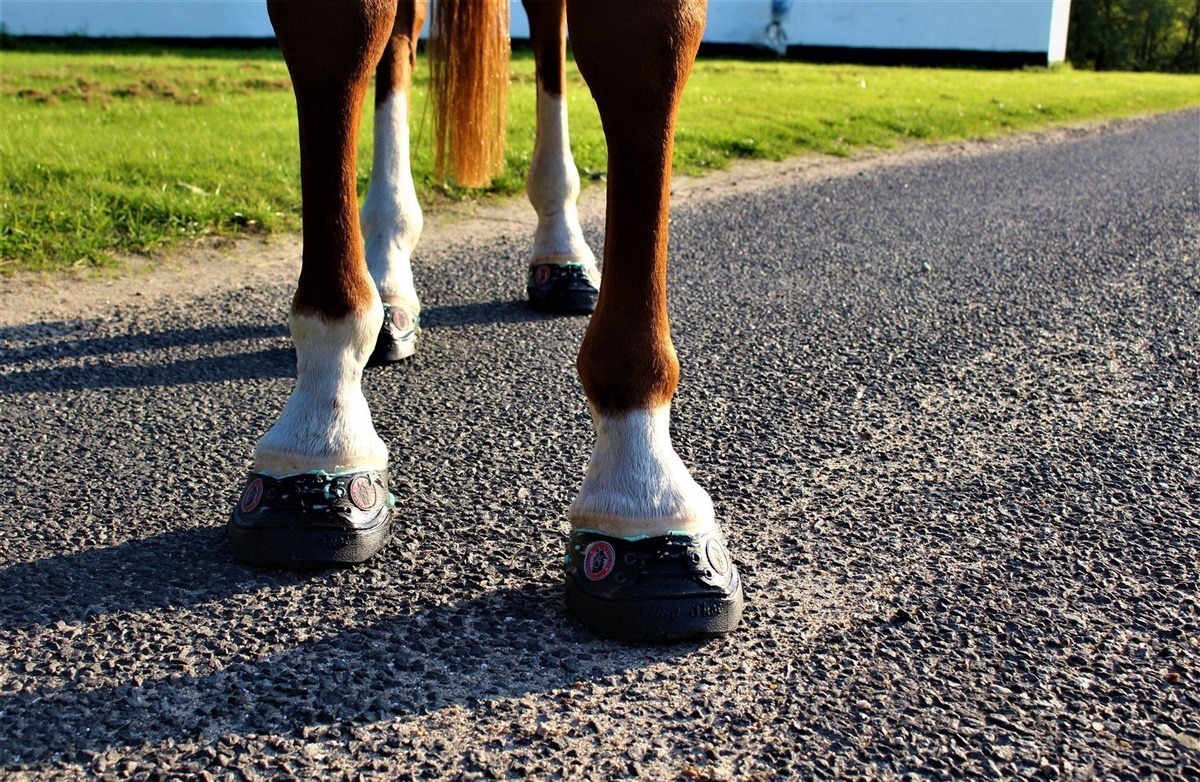 Vi var så heldige, at den norske veninde kom forbi i forbindelse med et stævne, og hun viste os, hvordan man sætter skoene på hesten. Siden da har jeg brugt limskoene på mine heste, og har været rigtig glad for dem.