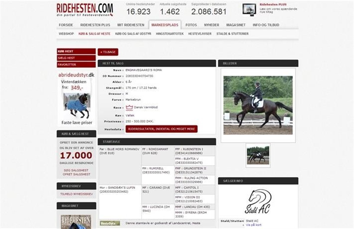 - Jeg synes det er det bedste sted at sælge heste, fortæller en glad og tilfreds Anna Carina Pedersen fra Stald AC. Hun fortæller samtidigt, at hun via Ridehesten.com har solgt flere heste i løbet af ingen tid, så hun har bestemt tænkt sig at fortsætte med at markedsføre hestene overfor køberskaren på Ridehesten.com.
