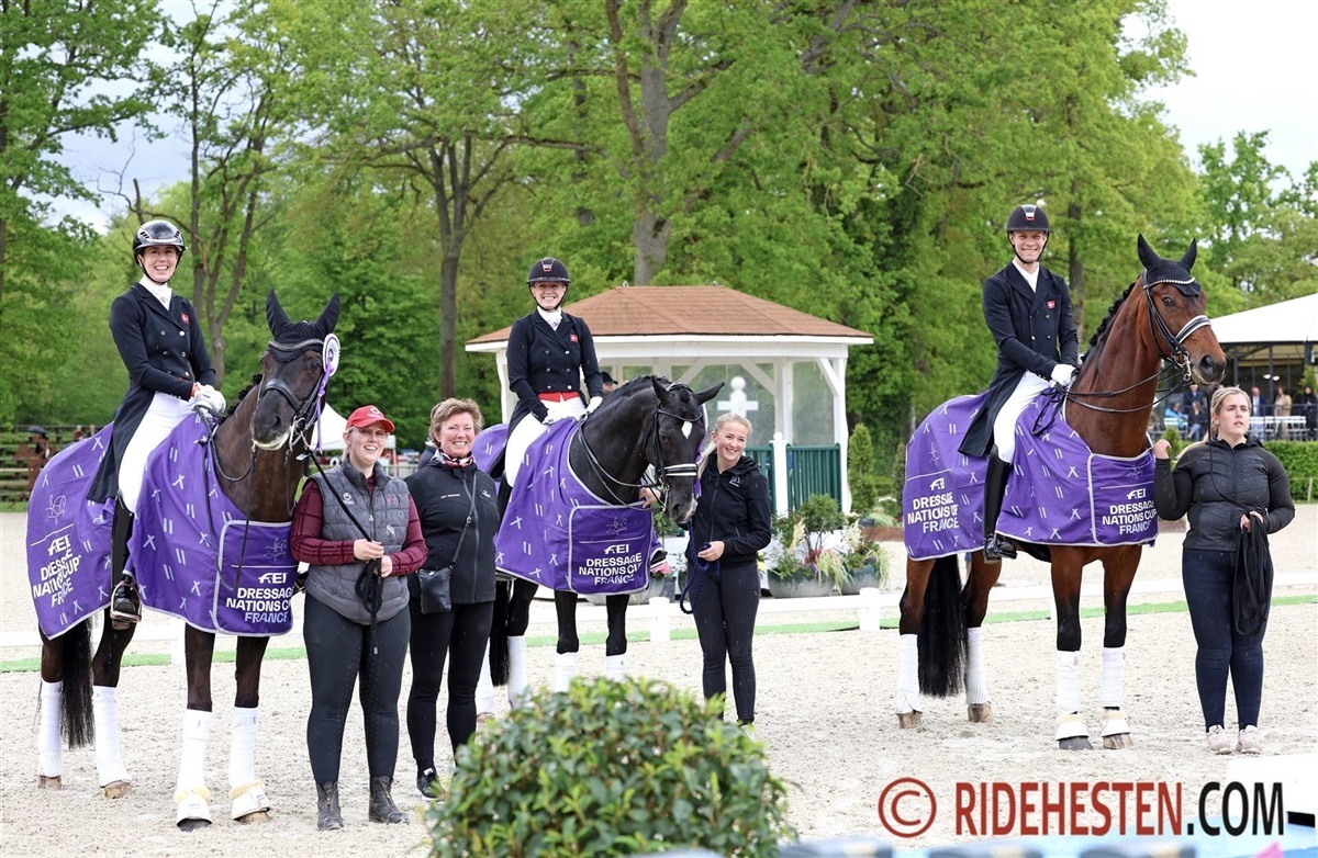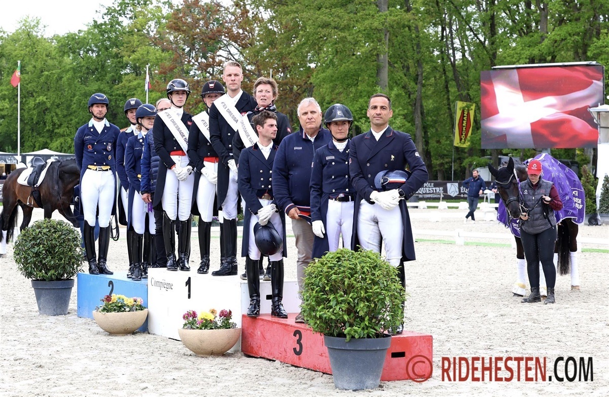 Daniel Bachmann Andersen med Vayron, Nanna Skodborg Merrald med Blue Hors St. Schufro og Carina Cassøe Krüth med Heiline's Danciera vandt holdkonkurrencen med en samlet vinderpoint på 225.500%, mens Sverige blev nummer to med 218.239% og hjemmenationen Frankrig på tredjepladsen med 215.261%.