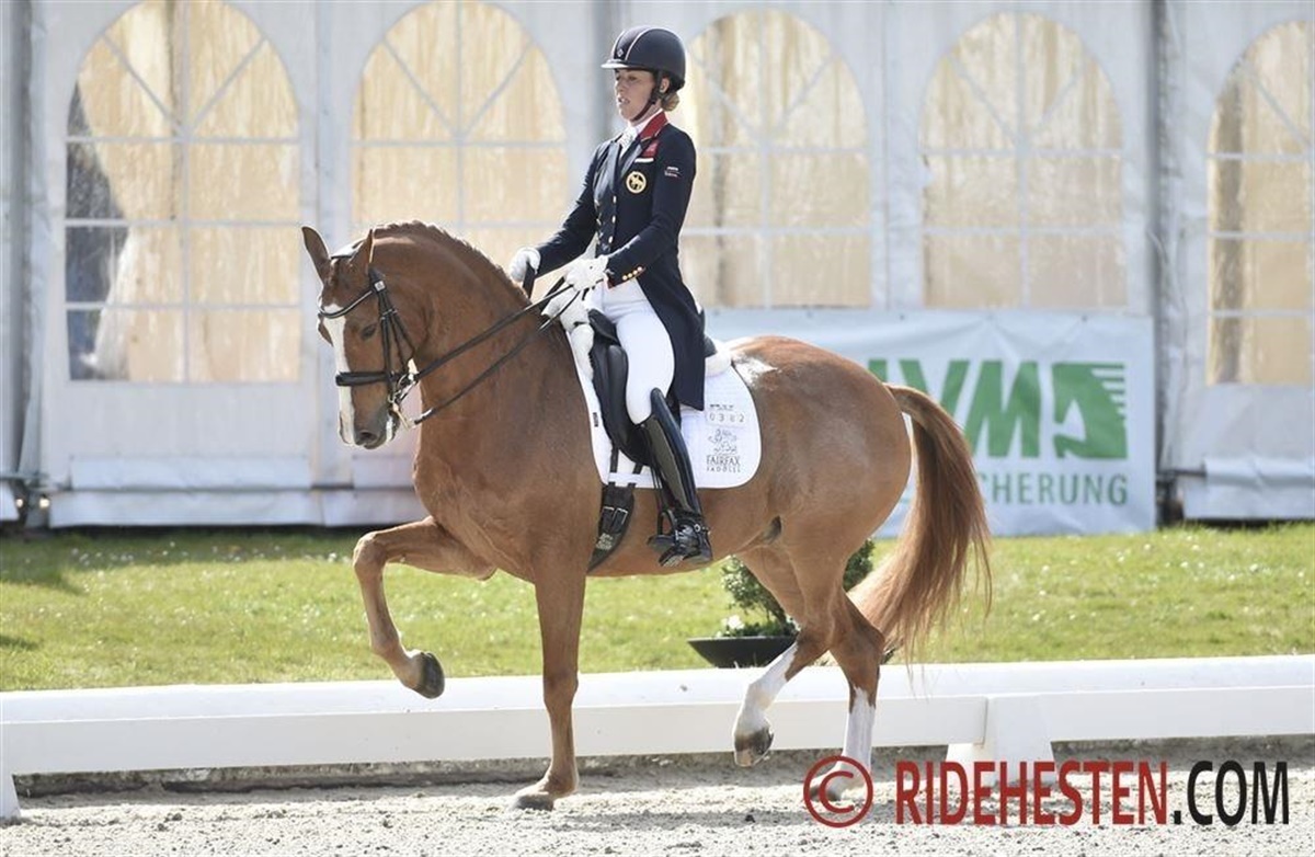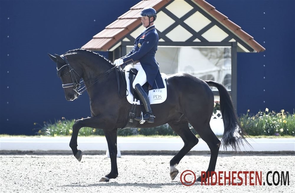 Charlotte Dujardin (35) med den 10-årige KWPN-vallak Gio e. Apache/ Tango, der er ejet af Renai Hart, Carl Hester og rytteren selv og avlet af hollandske H. J. de Jong og Ad Valk. Hestepasser: Alan Davies.