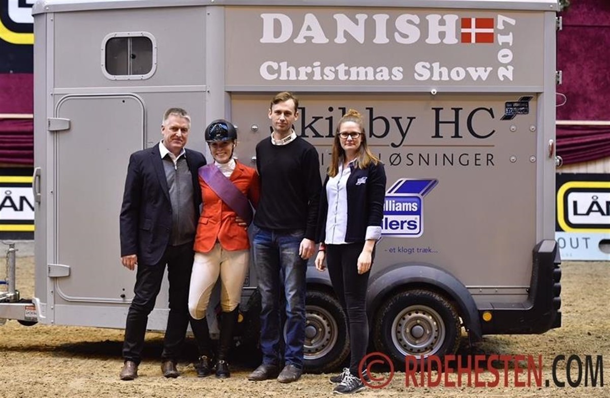 Hun var jublende lykkelig over at vinde den flotte Ifor Williams hestetrailer til en værdi af 70.000 kr., og da familien har en af de gode trailere i forvejen, så er planen, at denne skal sælges. – Det kan dække nogle af udgifterne til operationen, smiler Stine, som har stor ros til overs til hendes blot 7-årige hest, der viser stort talent også i de store klasser.