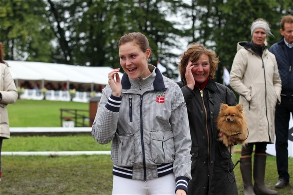 Der var glæde i den danske lejr i dag, for Carina Nevermann Torup satte de tyske og hollandske ryttere under pres med et stort set fejlfrit program som hun leverede med stor sikkerhed. I kraft af særdeles godt og præcis ridning på Blue Boy opnåede hun 73,342% og gik dermed ind i spidsen for konkurrencen. Ingen af de næst startende stærke hollandske og tyske ryttere gik forbi hende, indtil Sanneke Rothenberger og Deveraux red et meget overbevisende program til 74,343% Så red Cathrine Dufour på banen. Hun og Atterupgaards Cassidy begyndte støt og roligt at samle point. Og Cathrines smil lyste hele pladsen op, da hun leverede en galopøgning helt i særklasse. Hendes flotte program indbragte 74,079% og dermed ikke nok til at gå forbi tyskeren. Da den sidste tyske rytter, Charlott-Maria Schürmann red på banen var danskerne sikre på een medalje, men den ellers så sikre tysker lavde en indridningsparade, hvor Dona Jackson piafferede, men støt og roligt red hun sig op gennem travprogrammet, og hun så ud til at ville gå forbi Carina, men så fik hun fejl i changementsserien for hvert fjerde, og dermed var både dansk sølv- og bronzemedalje en realitet. Der går 15 ryttere videre til morgendagens kür, og foruden de danske medaljetagere kvalificerede Rikke Bøllingtoft sig ind i finalen med 70,421% på en 8. plads, mens Simone Ahlers Pedersen blev nr. 13 med 68,184 og det betød, at hun ikke må ride med i morgendagens finale, da hver nation kun får plads til tre ryttere i finalen.