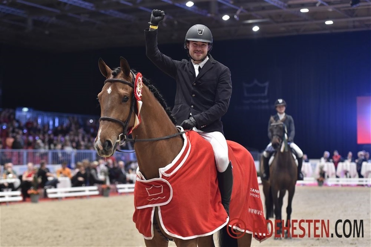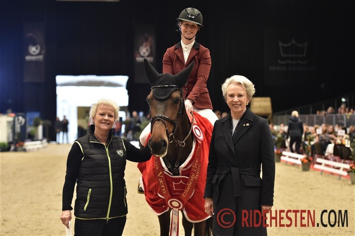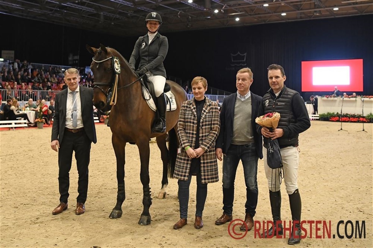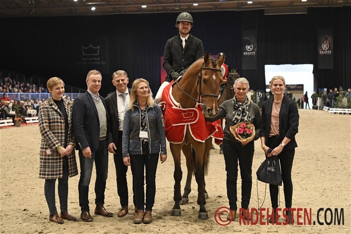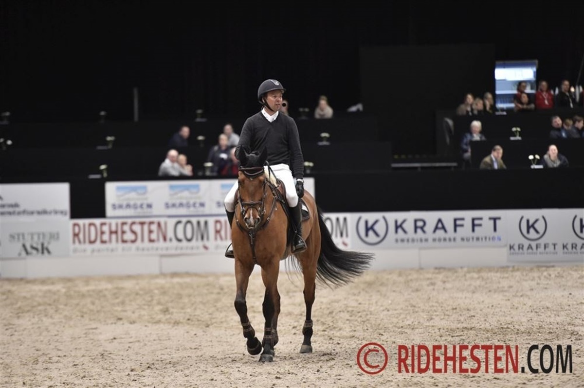 Der var tale om en hest, som Lars udtalte, var nem for ham at holde fremme. Der var ikke de store kommentarer til rideligheden, for det hele lå lige i skabet. Caprice havde hele tiden fokus på, hvor bommene lå henne, samtidig med at hun var rationelt springende – hvilket, som Lars udtalte, er typisk for afkom efter Caretino. På mange af springene kom Caprice godt af jorden. Da hun lavede en let berøring på forkanten af okseren, der nu var nået en højde på ca. 130 cm, så vi, at hun kvitterede korrekt på lodretten. Men da hun så skulle springe okseren en gang til, gik det helt efter bogen. Meget velfortjent blev det til 9,0 i ridelighed og kapacitet på 9,5, og en samlet pointsum på 867,500.