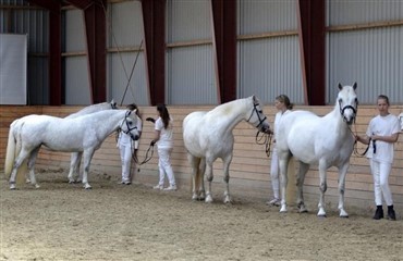 I alt 55 3-års og ældre hingste, som ikke tidligere har været fremstillet, har været bedømt her til formiddag. I eftermiddag skal de springbetonede hingste longeres, i morgen skal de løsspringe for anden gang under kåringen, mens de gangartsbetonede hingste skal longeres og gå løse i morgen.
