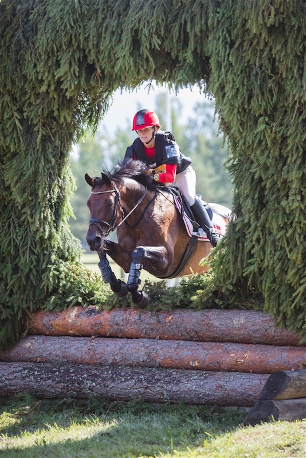 Det viser sig så, at Helena bliver sprunget ud af sadlen og falder af. Åh nej. Jeg møder hende efter dopingkontrollen, men heldigvis er der intet sket hest eller rytter. Katja kommer super igennem terrænet. Så hun ender på en andenplads i den åbne CIC2*. Superflot!