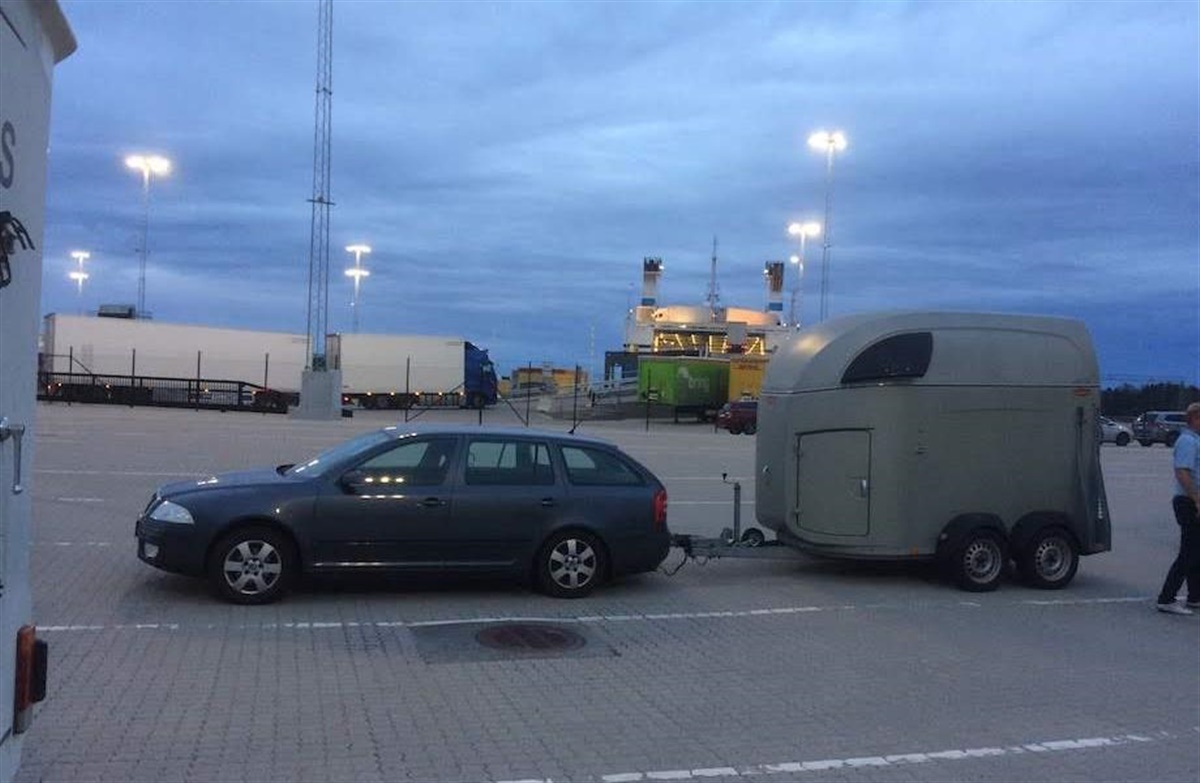 Kl. 22.30 ankommer jeg på gården. Princess kommer i boks, og jeg snakker kort med Katja, der så fortæller, at der skal sejles 9 timer med færge... Ja, okay. For det første skal vi ud på vores første rigtig lange rejse, og så 9 timer med færge. Puha, hvad har jeg rodet mig ud i?