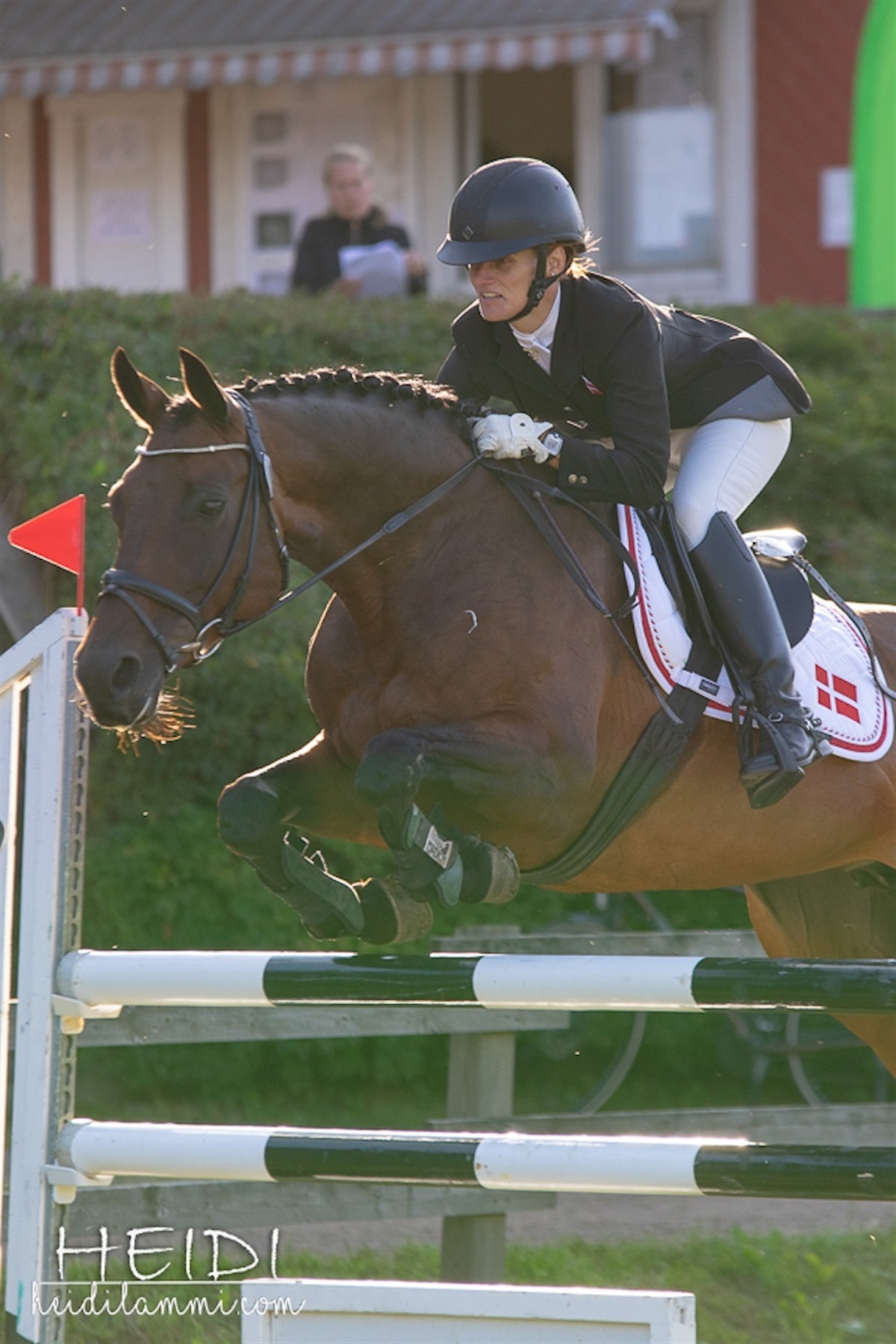 Jeg får et ganske dårligt ridt. Ridebanespringningen er min svage disciplin, og det skulle også vise sig i dag. 5 bomme blev det til, og jeg var ved at glemme sidste forhindring. Men jeg kom trods alt helt igennem, og heldigvis må man tage alle de bomme, man vil, og stadig komme i terrænet, når vi snakker international military.