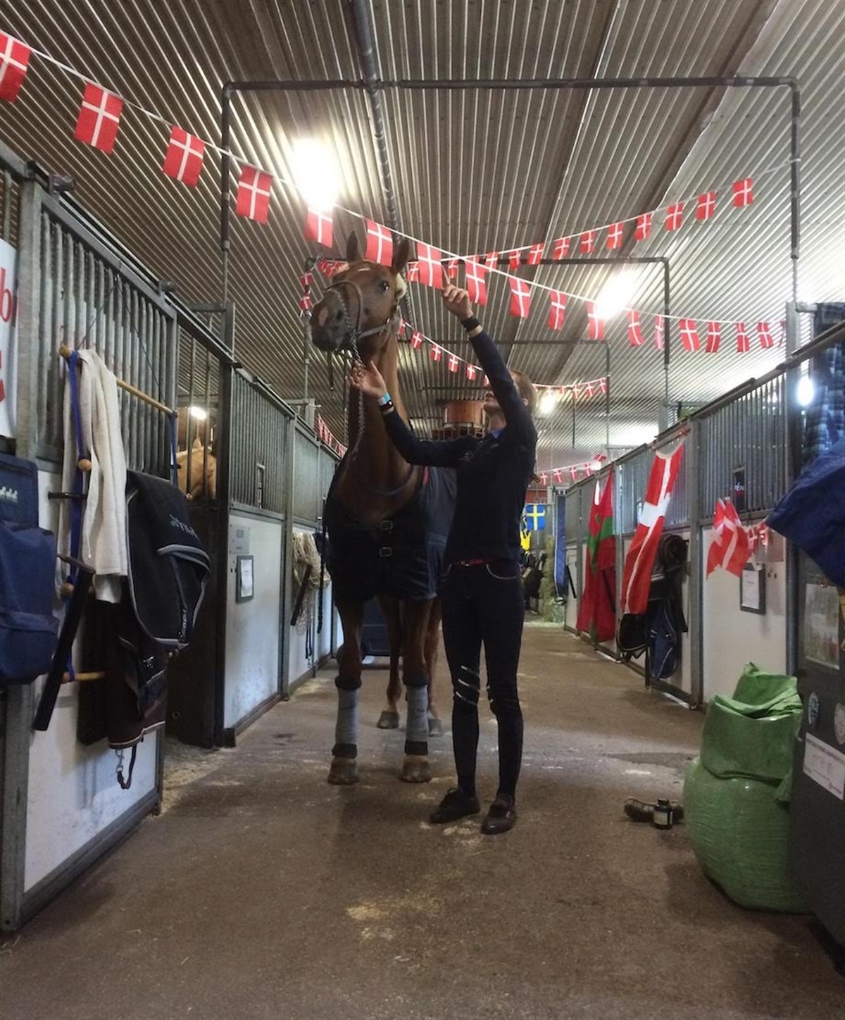 Så jeg jokede til de andre, at hvis hun gik sådan her til konkurrencen, ville hun gå til 19 straf. Det var dejligt med en lidt rolig dag. Men Princess fik stadig momenter, hvor hun stressede i boksen. Hun står også lige under en luftudsugning, som kører konstant. Den var nok til at stresse mig. Jeg måtte hele tiden være obs på hende, og Niels' kone Cathrine var så sød at skrive til mig, når Princess var utilfreds. Så kunne jeg tage ned og tage hende lidt ud og gå og græsse. Heldigvis havde hun også momenter, hvor hun slappede af.