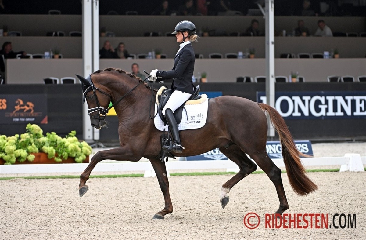 I går kom Betina Jæger og Quinn G. lidt uheldigt fra start, men sikrede alligevel tredjepladsen. Kan de ride sig længere op i lørdagens finale? Foto: Ridehesten.com/Kristine Ulsø Olsen
