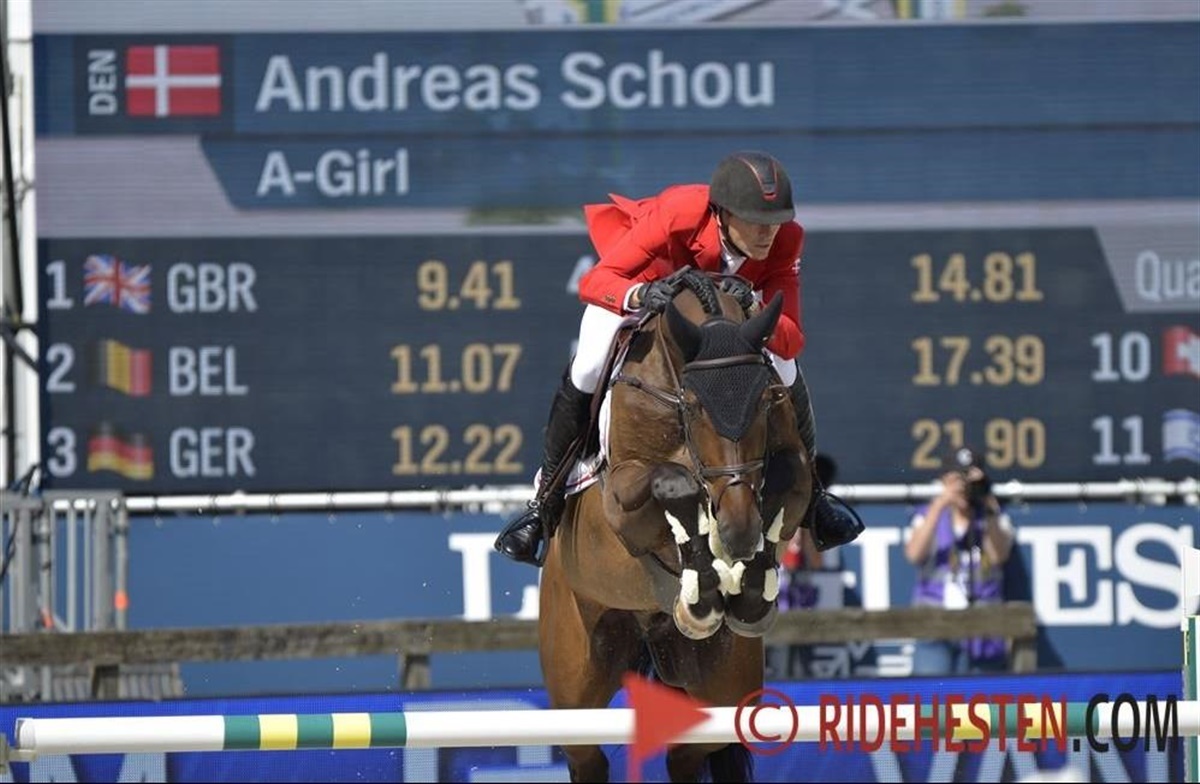 Kl. 15 i eftermiddag er den spændende afgørelse i holdkonkurrencen i springning. Danmark er med og starter først af de 10 hold i finalen, men da der er flere ryttere kvalificerede til at ride individuelt, så har Søren Møller Rohde først start nr. 12. Der går 25 ryttere videre til den individuelle finale, Søren Møller Rohde er lige nu nr. 22, mens Kim Kristensen er nr. 27. Det er Belgien som fører holdkonkurrencen, og da de mangler at få OL-kvalifikationen i hus, har de behov for at opnå en topplacering. De belgiske ryttere er godt springende, så mon ikke det "holder hjem" for de belgiske ryttere.