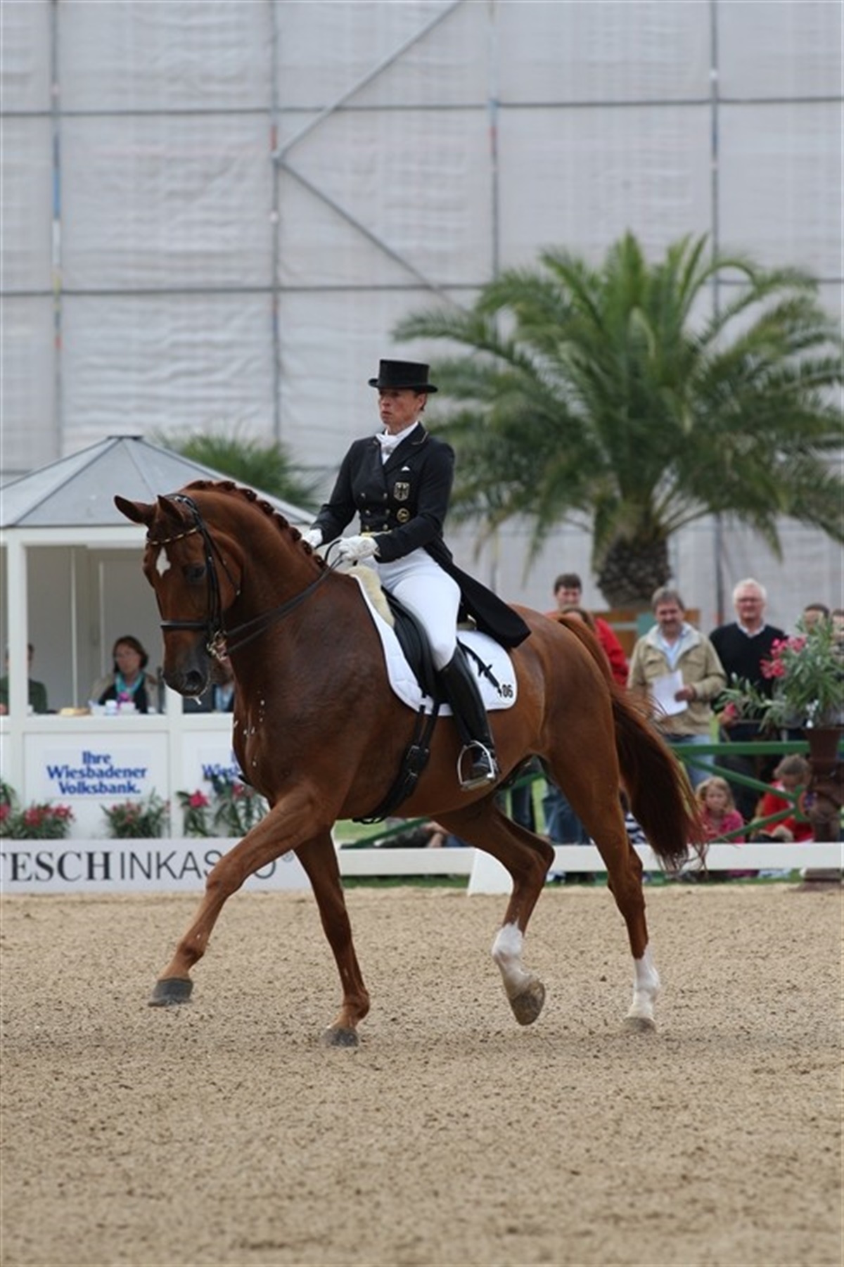I Grand Prix Special på andendagen af det tyske mesterskab i dressur vandt Isabell Werth igen på Warum Nicht med hele 78,9%. Matthias Alexander Rath, som på Sterntaler-Unicef lå blot 0,3 procentpoint efter Isabell fredag, scorede i går 76,2% og ligger atter på andenpladsen. Nummer tre blev lørdag endnu en gentagelse af placeringrækkefølgen fredag, da Ulla Salzgeber på Herzruf's Erbe red til 75,2% og en tredjeplads. Hubertus Schmidt avancerede lørdag en hel del på Prego og lagde sig på en syvendeplads med 70,7% efterfulgt af Nadine Capellmann og Elvis med 70,2%. I dag rides Grand Prix Kür fra kl. 10.30, og du kan følge resultaterne live via linket i højre side, hvor du også finder resultaterne fra fredag og lørdag.