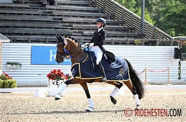 På førstedagen i onsdags lagde den danske rytter hårdt fra land med et flot Prix St. Georges-ridt på den 8-årige vallak Hussmanns Jackson e. Johnson TN/ Belissimo M (opdr. Stald Hussmann) til 71,079%, og i gårsdagens kür blev det til flotte 74,867% og en sejr for næsen af de svenske ryttere.