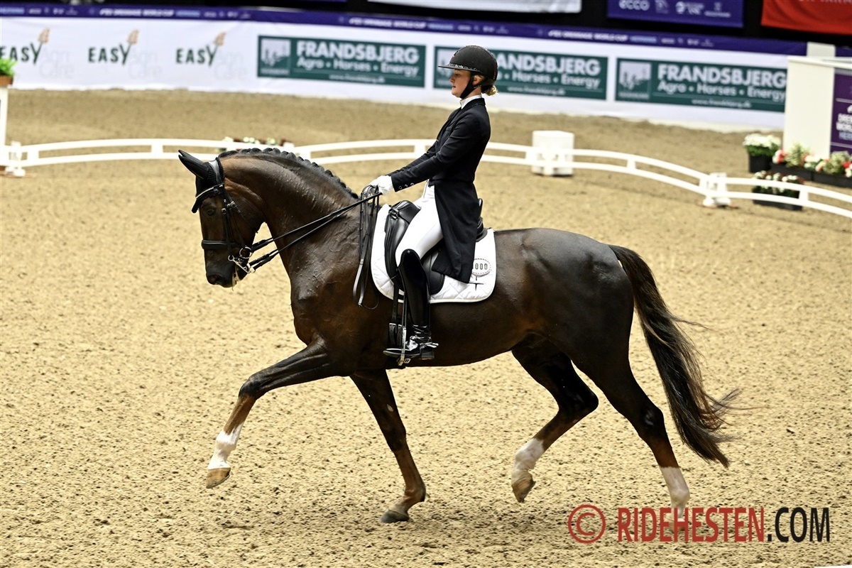 Første dansker på banen var Karoline Rohmann med den 13-årige hoppe Aagardens Lianne e. IPS Krack C/ Cape Town S (opdr. Stutteri Aagaarden v/ Hanne Aagaard). Deres ridt bar præg af masser af harmoni og en hest, der er rigtig meget med Karoline og ikke skal kæmpe for at lave øvelserne. Der skal stadig mere power og udtryk til for at opnå højere procenter, men det var rigtig pæn ridning med flotte changementserier og et meget flydende travprogram. Ridtet blev belønnet med 68,162%.