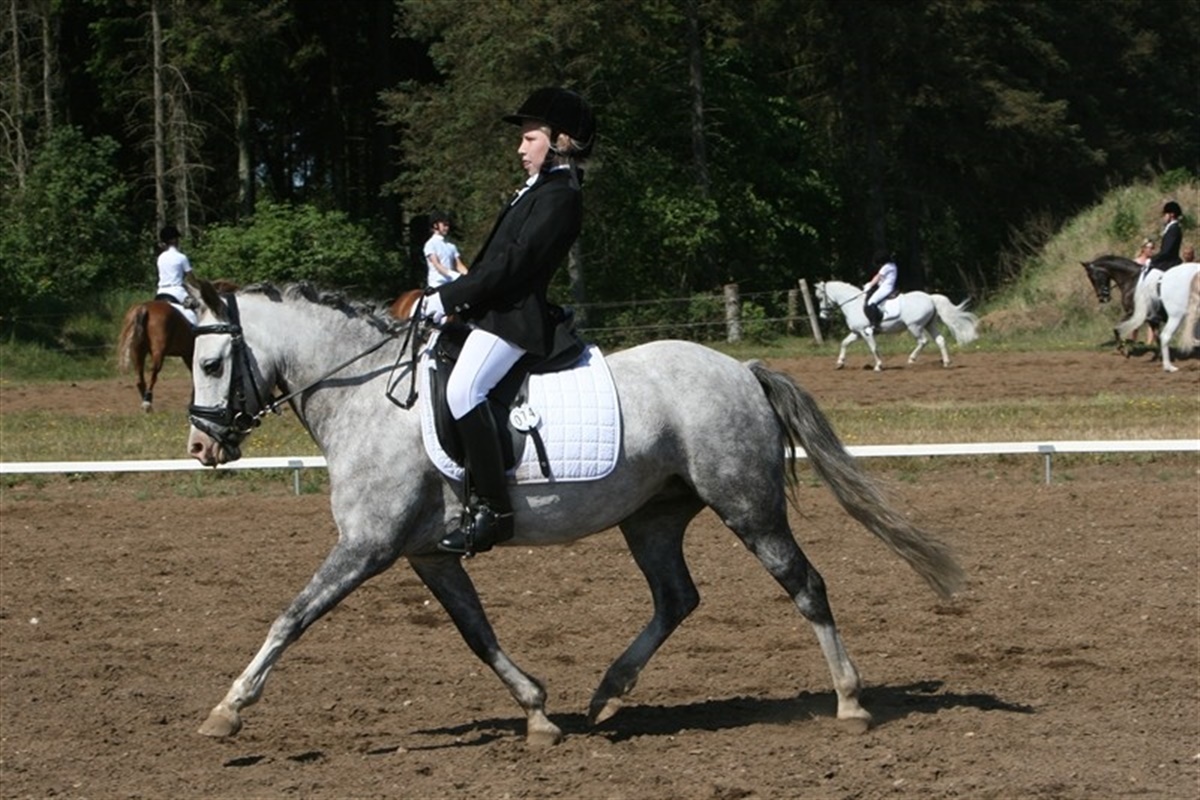 En fotograf fra Ridehesten havde søndag lagt vejen forbi rideklubben i Grindsted, hvor der blev afholdt distriktsstævne i spring og dressur for ponyer. Men der var nok at se til, for der blev redet på hele fire baner. På de tre dressurbaner blev der redet lige fra LB1 til PRI-04. De mange tilskuere kunne på den varme sommerdag søge tilflugt i skyggen, mens ryttere og heste måtte holde ud og yde deres bedste på banerne i solen. Enkelte ponyer led desværre mere end andre i varmen og det kunne ses under ridtene. For at nævne nogle enkelte af dagens vindere kan vi oplyse, at vinderen af dagens LA1 for kat.1 ponyer blev af Maria Damgaard på Monet. LA3 for kat. 2 og 3 ponyer blev vundet af Heidi Astrup på Åvangs Bounty. PRI-04 for kat. 1 blev vundet af Maria Vesteholm og Houmarks Sofus. Dagens resultatlister kan ses på følgende link: http://www.grrk.dk/Stævner/resultatdressurjuni08.html#125 Allerede mandag eftermiddag vil man kunne se billeder fra søndagens dressurklasser på Ridehestens hjemmeside.