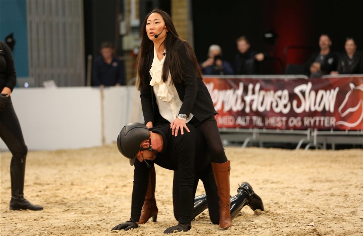 Showet handlede derfor om, at de to ryttere skulle bytte heste og ride en freestyle foran publikum med de informationer som de fik af Ditte Young.