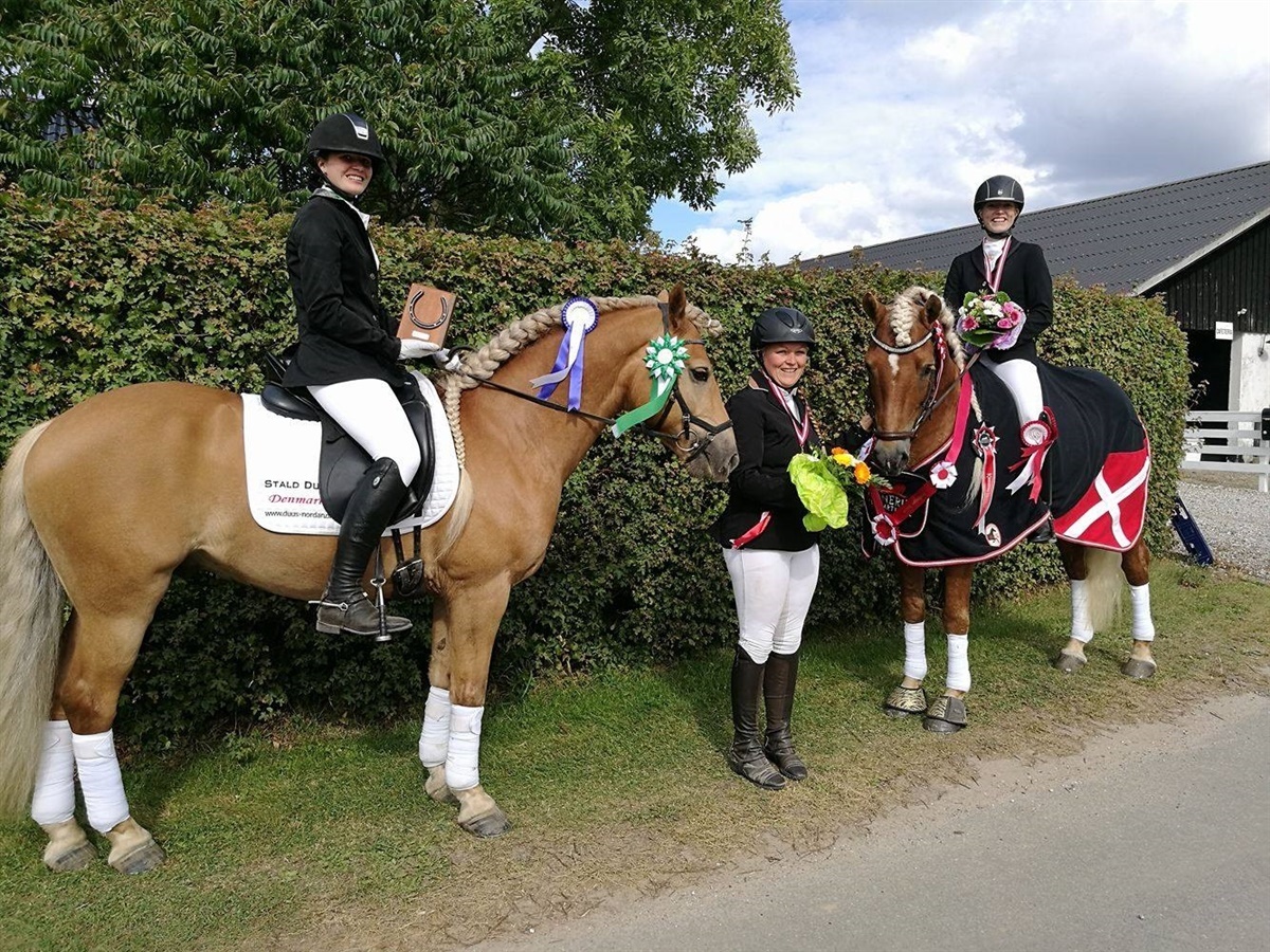 - Selvom det var en lang tur fra Nordjylland til Fyn, så var det hele rejsen værd, når man ankommer til et flot og velarrangeret stævne. Vi havde forberedt os rigtig godt hjemmefra og alle de mange timer bar frugt og turen hjem til Nordjylland med vores tre haflingere, var ikke nær så lang når man har to guld- og en bronzemedalje med hjem. Vores haflingere viste fin form og vores ryttere Johanne Hestvang, Emilie Stendys og Freya Agerskov gjorde deres absolut bedste imod de dygtige konkurrenter.