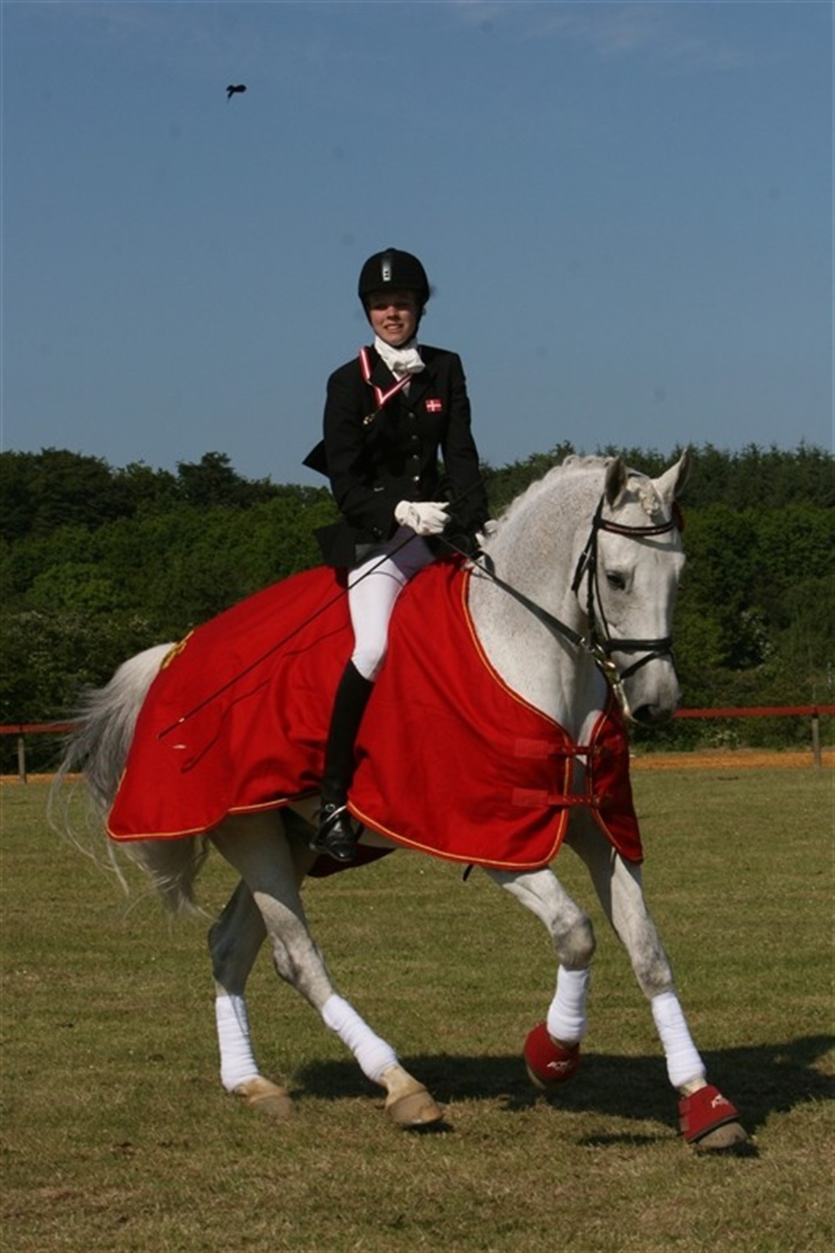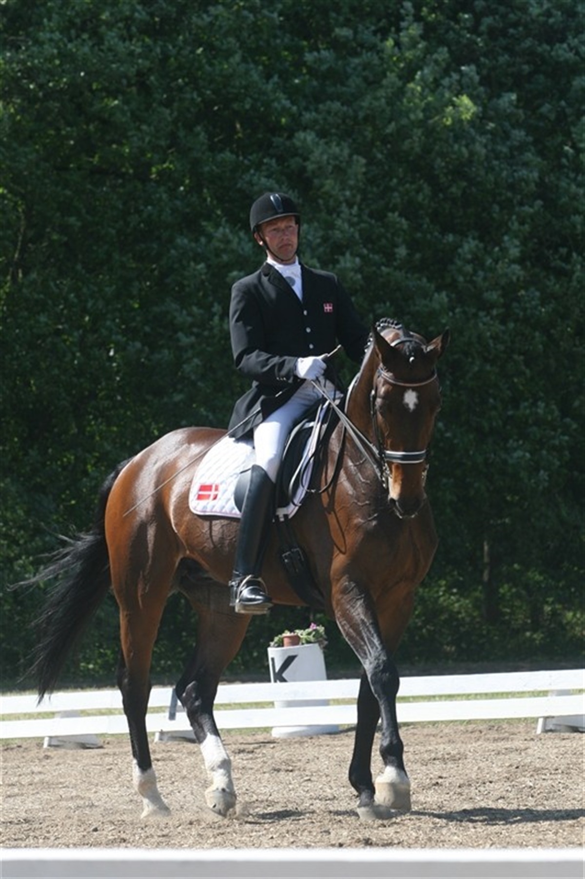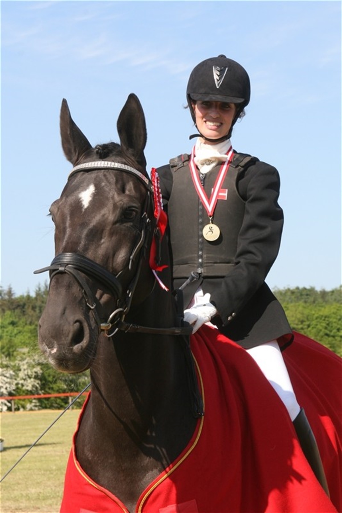 Solskin og glade mennesker, det var det vi mødte i dag til landsstævnet i Kolding, hvor der blev afholdt DM for handicapryttere. Der blev redet i tre afdelinger, hvor hver enkel ekvipage fremviste deres flotte kür program for dommerne og de mange fremmødte tilskuere og familiemedlemmer. Der blev redet til god og stemningsfyldt musik og de mange fans heppede det bedste de havde lært. Vinderen af første afdeling grad 2 blev Caroline Cecilie Nielsen på hesten Stenvads Cougar. Ekvipagen red et super flot Kür program til 76,8%, på trods af, at de kun havde arbejdet sammen i én uge inden stævnet. Afdeling 2 handicap grad 3 blev vundet af Annika Lykke Daslskov med hesten Alfarvad April Z, de red til hele 79,3%. Sidst men ikke mindst blev vinderen af afdeling 3 handicap grad 4 den lokale rytter Henrik Sibbesen, der sammen med sin hest Lock Fight er udtaget til OL i Beijing.