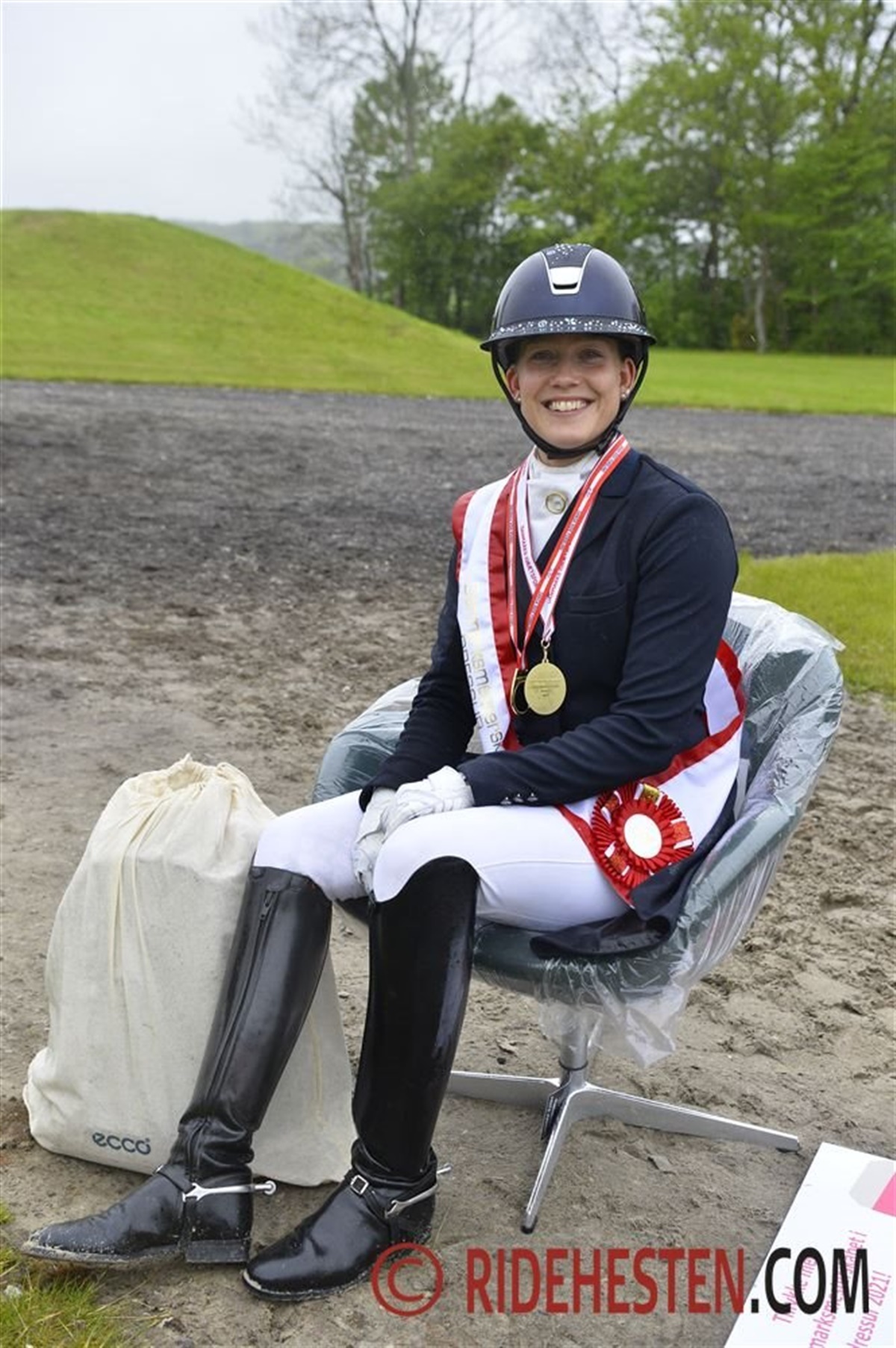 Forsvarende mester og nu guldmedaljevinder Cathrine Dufour har vundet utallige internationale mesterskaber og medaljer med hesten Atterupgaards Cassidy e. Caprimond/ Donnerhall (opdr. Atterupgaard), og selv om Cassidy nu er 18 år, så er han stadig frisk og veloplagt og i stand til at sikre Cathrine endnu en mesterskabstitel efter et forrygende kürprogram.