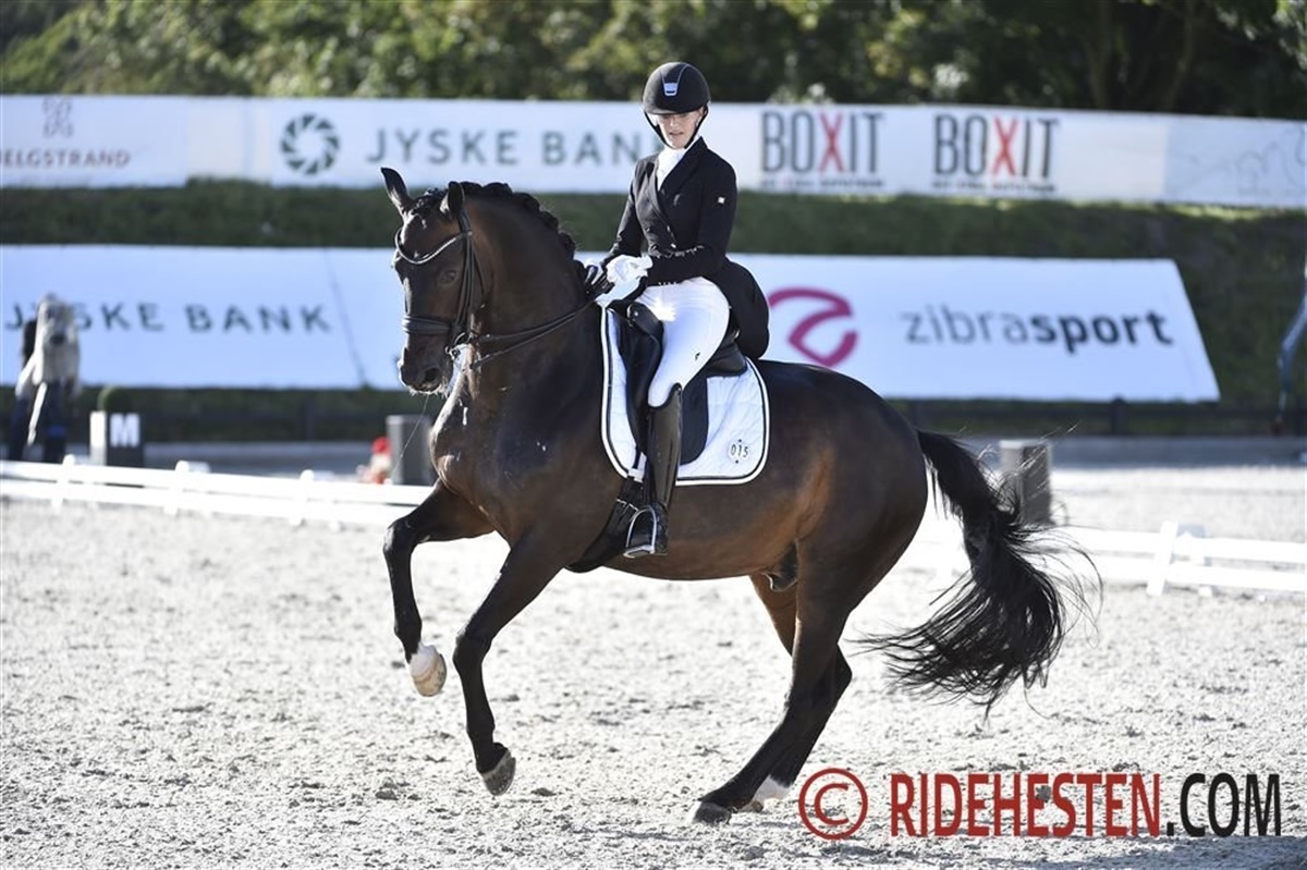 Mens man bare stod og nød Cathrine Dufour og Atterupgaards Cassidys ridt i ECCO DM, fordi de udstrålede så stor sikkerhed og overblik, så var der mange, som red med DM-debutanten Carina Cassøe Krüth og Heiline's Danciera e. Fürstenball (opdr. Stald Heiline). Hun havde sammensat en svær kür, som det er planen hun skal vokse ind i, når Danciera bliver endnu stærkere, og hold da op, det har potentiale til at blive helt verdensklasse! Piaffe og passage blev vist som efter en metronom, i øgningerne strakte hoppen sig og svævede tværs over banen. Det svære galopprogram med dobbeltpirouetter efterfulgt af 2'er changementer på buet spor, direkte over i ettere på buet spor og derefter igen 2'er changementer fik publikum til at spærre øjnene op. 82,45% opnåede parret. – Jeg er godt tilfreds. Jeg fik fyret lidt mere op under hende i dag, smilede Carina efter sit ridt. Hun erkendte nogle småfejl i galopprogrammet, som skal forbedres, men af en debut i mesterskabet, og første gang hun rider sin kür, så er sølvmedaljen i mesterskabet en mere end godkendt præstation.