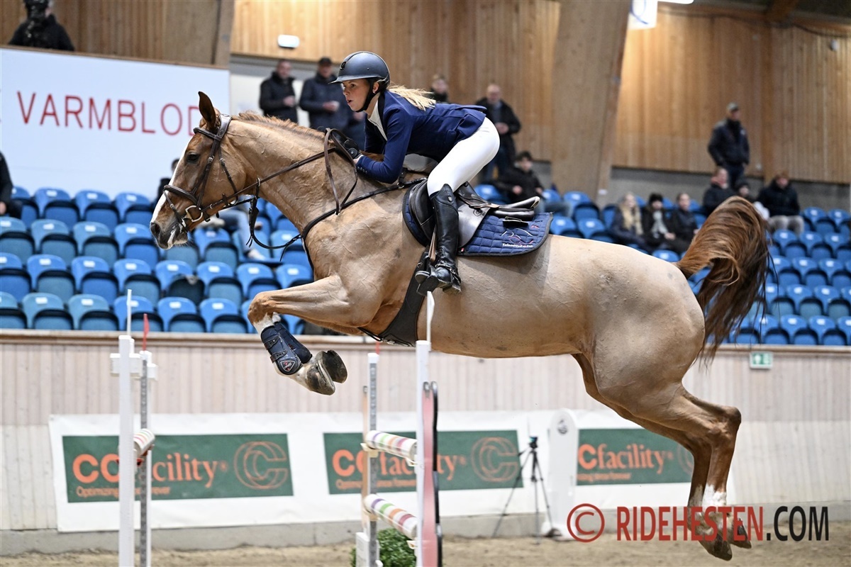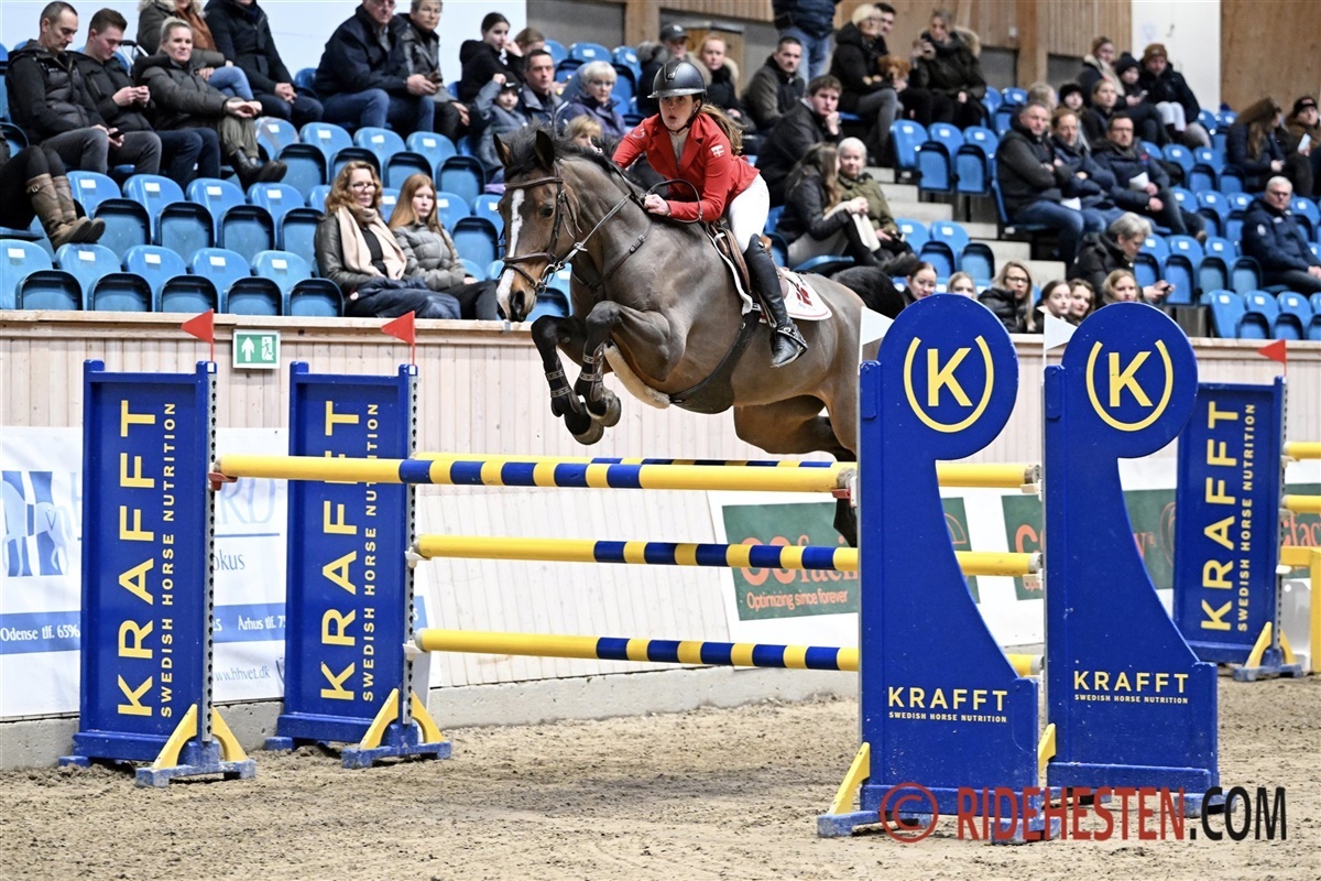 Det slog dog ikke Caroline Knudsen med Landlyst Callicon e. E Bøgegårdens Dicapo/ Coronado (opdr. Karina Pinds) ud, for hun red med alt hvad hun havde, og kom fejlfrit i mål lige nøjagtigt 0,43 sekunder hurtigere end Alberte.