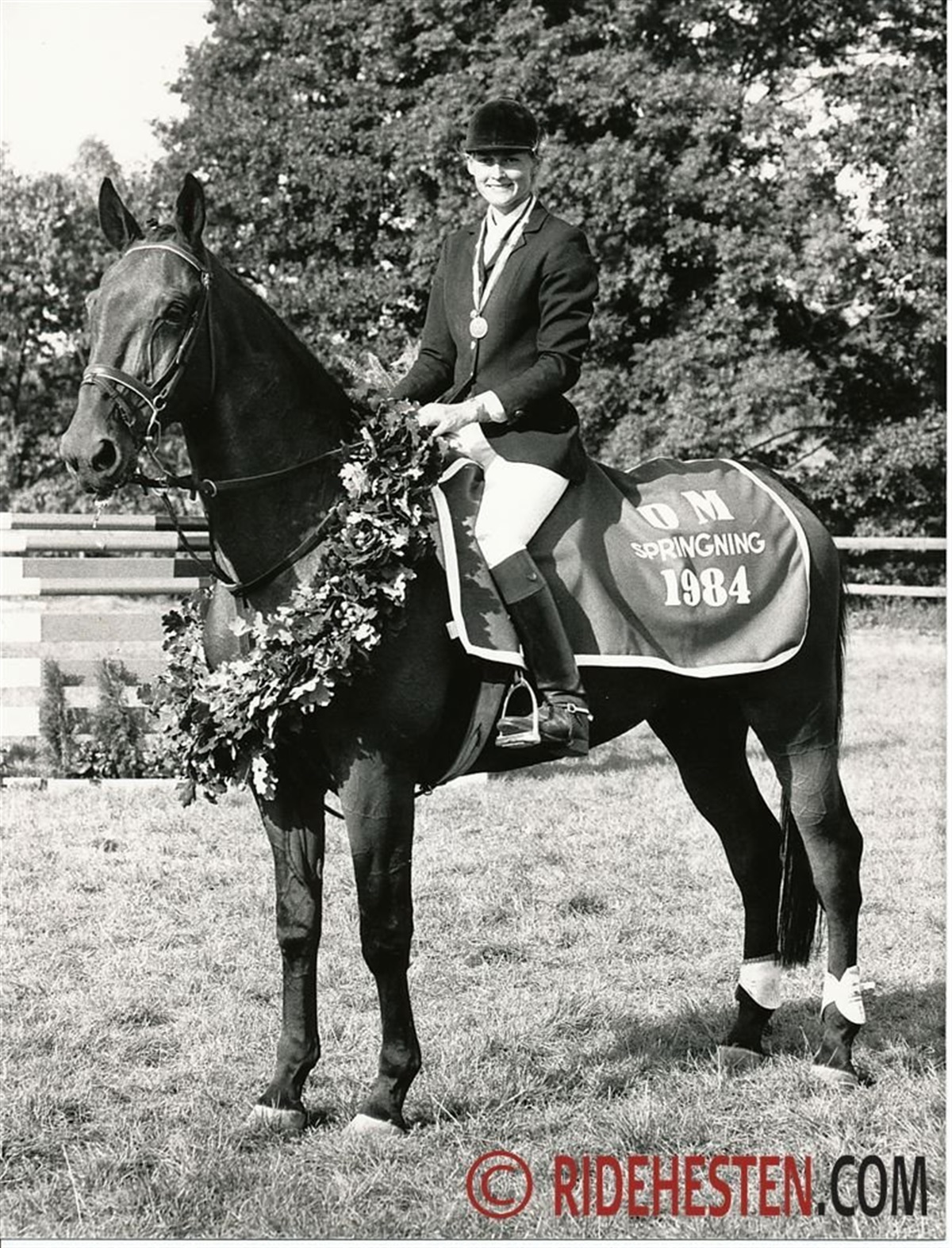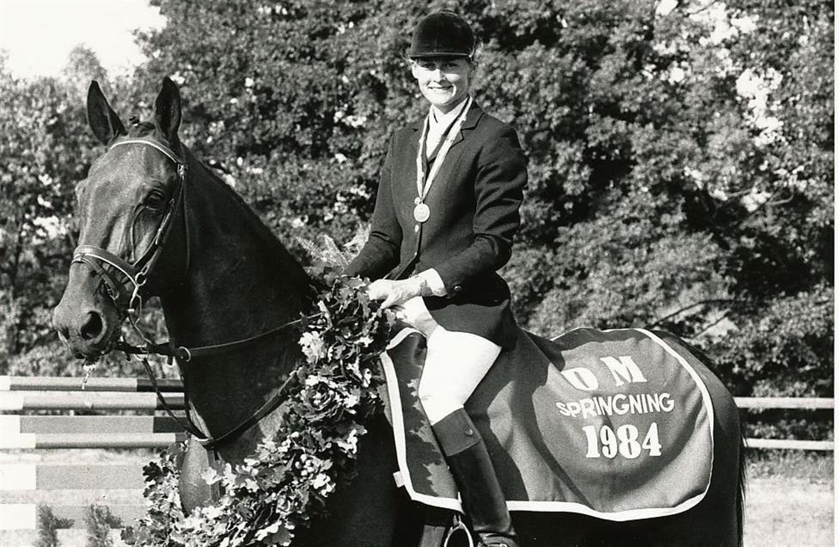Det var Barthahus på Sjælland, som i 1984 lagde græsbane til mesterskabet i springning for seniorer. Klassen gik over to afdelinger, og den eneste, som formåede at ride begge runder fejlfrit var 28-årige Liselotte Ternvig på Flux Toptani. Erik Bigler, som havde taget sejren året forinden, netop foran Liselotte, måtte tage til takke med sølvmedaljen på Polaris, mens berider John Byrialsen vandt bronze med Novobalts World Cup.