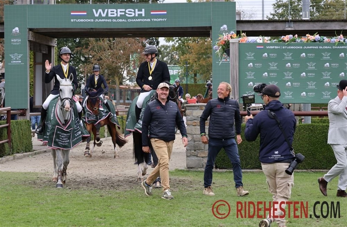 Stemningen er fantastisk i den danske lejr ved WBFSH Studbooks Jumping Global Champions Trophy i Valkenswaard,hvor det danske varmblodsteam vandt guld i konkurrence mod 11 forbund.