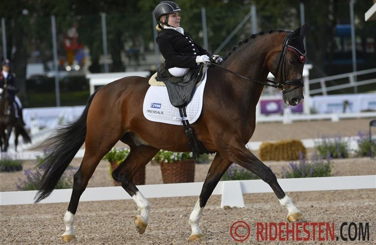 - Det flød ret godt i dag, fortæller Stinne beskedent, efter sejren, hun fortæller, at hun havde en fed tur derinde i den helt nye kür, som hun kun har nået at ride igennem en gang derhjemme. - Den er helt vildt dejlig at ride til, fortæller hun. Hun havde gjort den fejl, lige at se resultatet for hendes nærmeste konkurrent inden hun selv red ind på banen og med 76,7% troede Stinna med sikkerhed at guldet var tabt. - Når man rider derinde er man så fokuseret på sit ridt, så det kan være svært helt at vide, hvor godt det er, fortæller hun. Det var godt, for med 77,6% var guldet i hus.