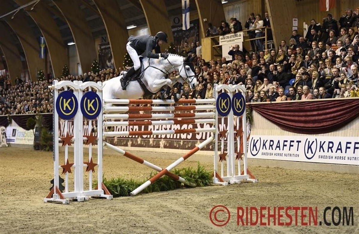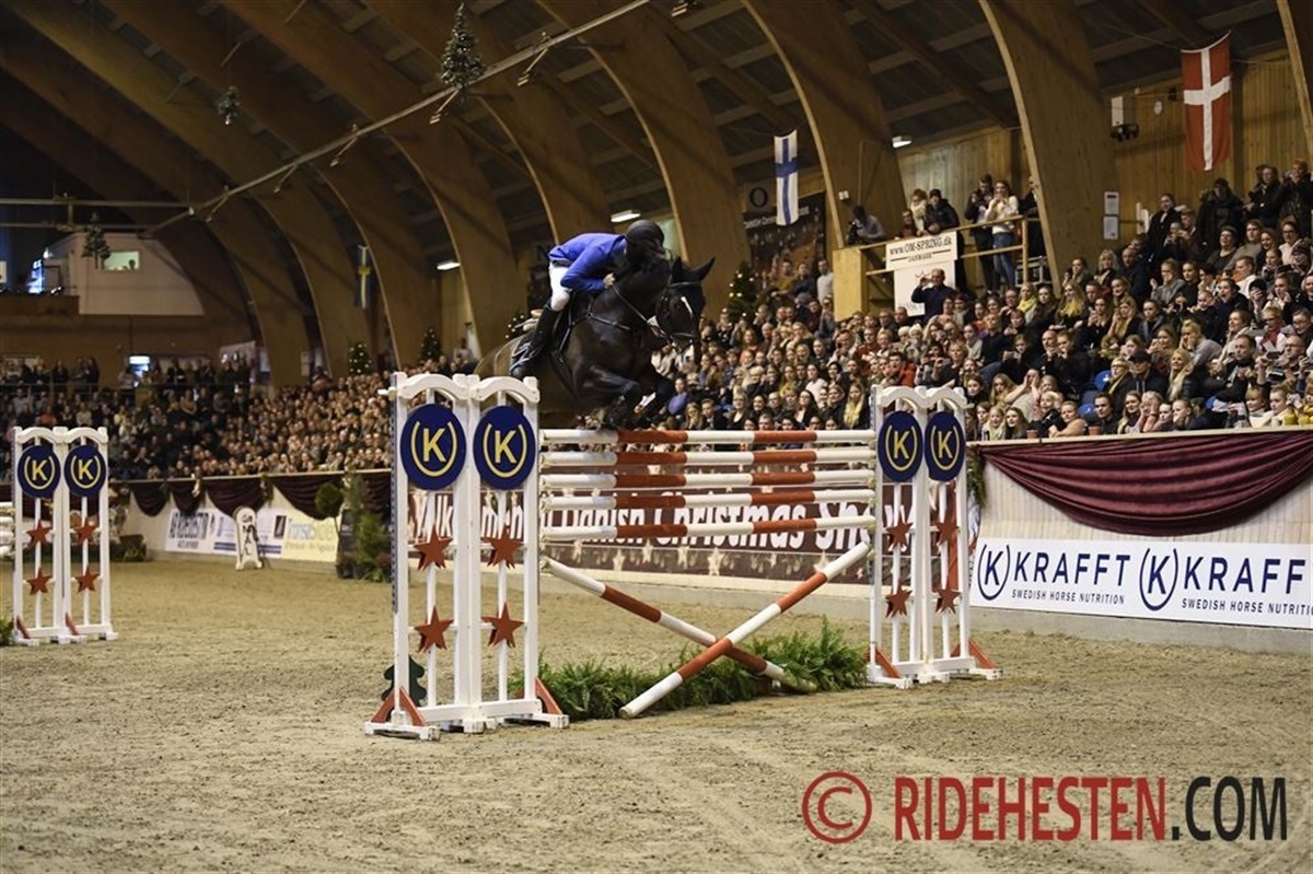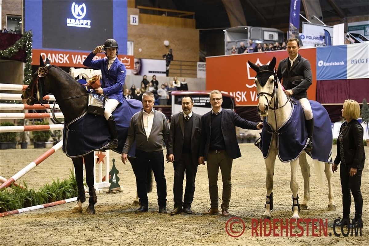 Michael Aabo har haft den nordiske højdespringsrekord på 2,35 m, så han ved, hvordan sådan en opgave skal løses. Han og Caprice de Dieu gik videre fra den ene runde til den næste, og det samme gjorde Christophe van Geenberghe og Grand Date. Da begge rytterne var fejlfri over 1,90 m ville jublen næsten ingen ende tage i hallen, ville rytterne så ride den afgørende runde på 2 meter - eller ville de vælge at dele æren og pengene? Publikum ventede i spænding, rytterne diskuterede om de ville forsøge, og så gav Jesper Bæk fra Krafft Danmark lige et ekstra incitament til rytterne, da han smed ekstra penge i præmiepuljen. Man kunne høre en knappenål falde til jorden, da Christophe van Geenberghe red mod første forhindring - og jublen rystede "borgen" da han landede fejlfrit efter de to meter. Han blev så glad, at han rakte armen i vejret i jubel, hesten tog fart mod hjørnet, og rytteren faldt af... Han var dog hurtig på benene igen, og som speaker og stævnearrangør Casper Cassøe fortalte publikum, så kunne han se rytteren løbe rundt på opvarmningsbanen i jubel. Christophe har også blot redet hesten i halvanden uge inden julestævnet på Vilhelmsborg.