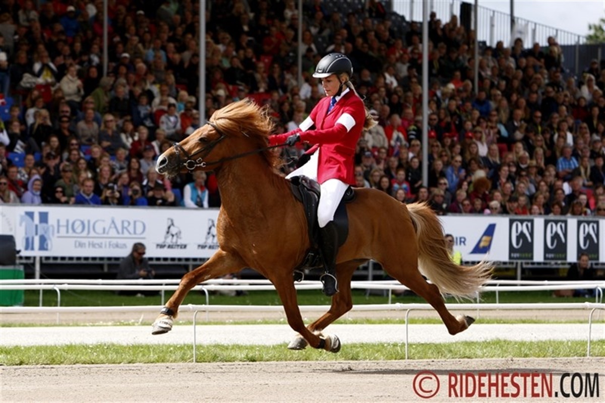 Derudover blev danske Hans-Christian Løwe nummer et i b-finalen i tølt T2 på hesten Eldjárn frá Vivildgård med et snit på 7,42, og er dermed videre til a-finalen i morgen.