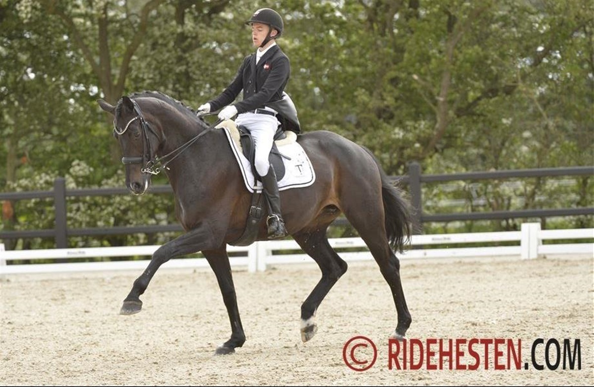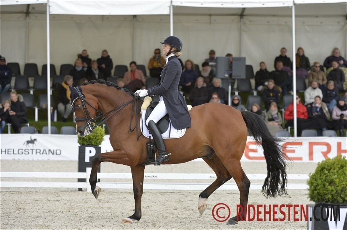 Alexander har haft et travlt stævne med start både i pony- og juniorklasserne og her til morgen klappede det for Alexander i kürprogrammet, hvor han formåde at vise den smukke hoppe frem på bedste vis. Der var en god sværhedsgrad i programmet, og med blot et par små skønhedsfejl undervejs i galopprogrammet blev det til en sikker sejr med 75,433%