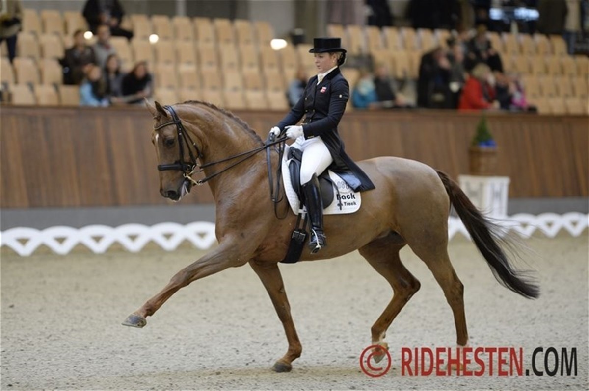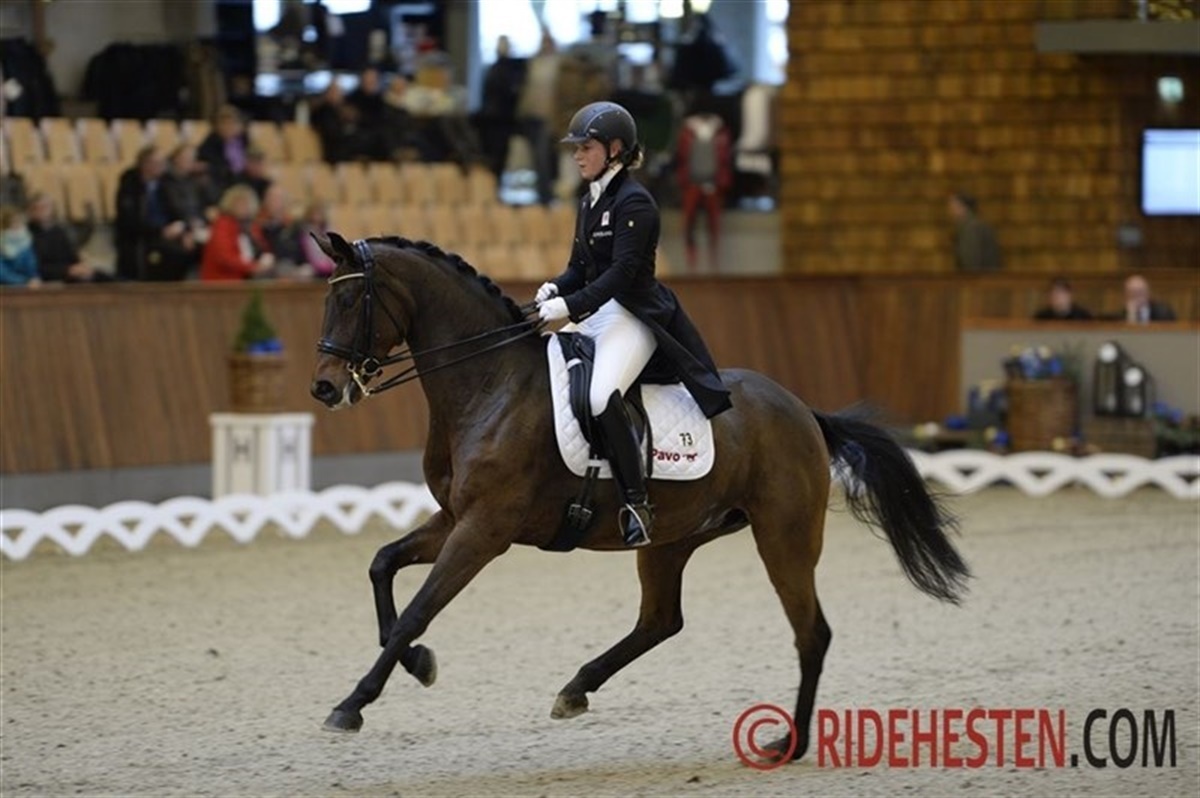 - Hans energi fejlede ikke noget, sagde Anna med et smil efter klassen, jeg er meget glad for igen at få ham Nu er planen, at han langsomt skal vænne sig til igen at være til ridestævner førend Anna begynder at satse mere i programmerne. Det blev Annas elev Mille Larsen Warncke, som indtog tredjepladsen i klassen med Langkjærgaards Donna Fetti e. Blue Hors Don Schufro. Når Mille ikke sidder på en hest bevæger hun sig stille rundt med en halskrave, en sikkerhedsforanstaltning efter et uheld i træningen tidligere på ugen.