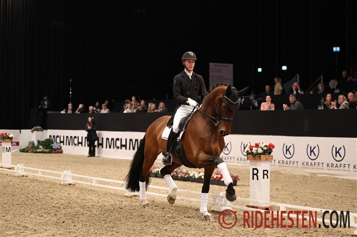Fjerdepladsen gik til Daniel Bachmann Andersen og Vayron e. Vitalis/ Gloster, der i torsdags vandt Grand Prix'en. I dag red Daniel den 12-årige westphalervallak til en score på 72,128%.