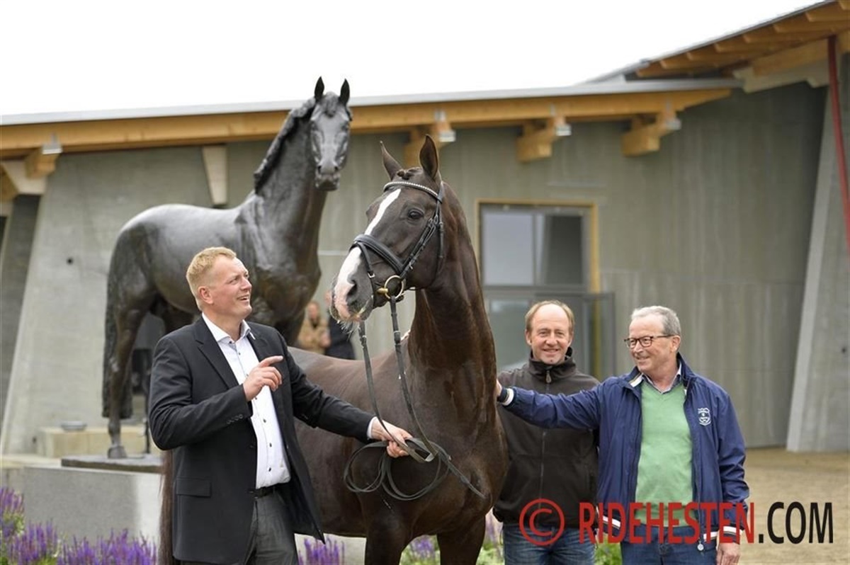 Nu er det altså nye tider for statuen, der har sagt farvel til Korshøjgaard, og står klar til at byde de nulevende Blue Hors hingste pænt goddag, når de forventligt ankommer til den nyrenoverede dressurhingstestald på Stutteri Ask i september måned.