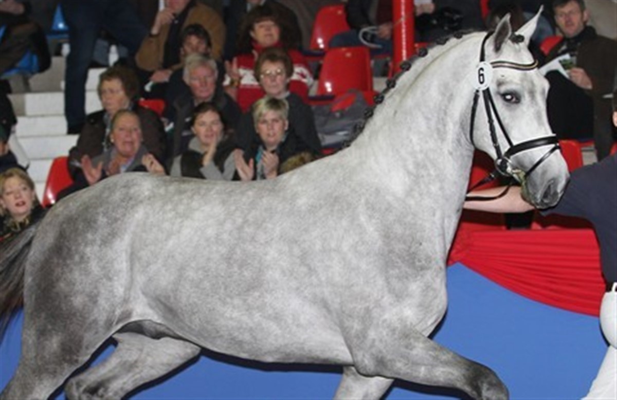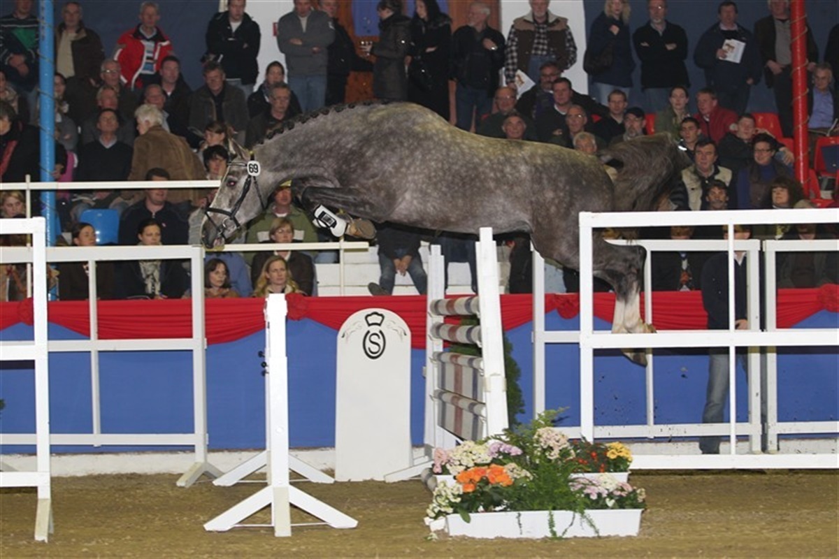 Den skimlede Don Schufro-søn travede sig til sejren i dag i Oldenburg. Den udtryksfulde hingst var særdeles velfungerende i trav, og publikum var begejstrede over hingsten. Andreas Helgstrand og Per Skjærbæk bød hingsten hjem på den efterfølgende auktion til 210.000 euro. På de efterfølgende pladser i præmieringen fulgte: 8 e. Florencio, 3 e. Diamond Hit, 33 e. Sir Donnerhall, 21 e. Rosandro, 36 e. Swarovski, 32 e. Sir Donnerhall og 14 e. Quaterback. I den springbetonede afdeling i Oldenburg International var det også en skimlet hingst der blev trukket frem på fløjpladsen – kat. nr. 69 e. Coupe de Coeur viste stor kapacitet i løsspringningen, og det satte ham på fløjen foran kat.nr. 58 e. Chacco-Blue. På de følgende pladser stod: 60 e. Cola, 51 e. Calido, 56 e. Casper (Eurocommerce Berlin), 81 e. Stakkato og 67 e. Cornet Obolensky. På den efterfølgende auktion blev springfløjen solgt til Schweiz for 170.000 euro. Læs meget mere om kåringen i Oldenburg i magasinet Ridehestens decembernummer.