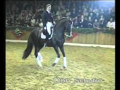 De tyske hingstes avlsværdi bliver hvert år udregnet i, hvad tyskerne kalder verdens mest moderne avlsværdivurderingsmodel. Den enkelte hingsts avlsværdi placerer den på en rangliste i dressur eller springning med hundredvis af hingste. Disse ranglister kan købes på DVD hos det tyske rideforbund FN, mens man offentliggør navnene på de bedste 1% hingste. Den danskejede oldenburgerhingst Blue Hors Don Schufro e. Donnerhall / Pik Bube I har nu i ti år ligget nr. 1 eller 2 på den tyske rangliste over de bedste faderhingste i dressur, dvs. i nedarvningen af ridelighed og gangarter. Hingsten har haft enestående betydning i dansk avl og tilmed i sporten, hvor han under Andreas Helgstrand var med til at sikre Danmark OL-holdbronze i 2008. Don Schufro er i år tilbage på førstepladsen og hans søn Diamond Hit er far til hingsten på andenpladsen, Don Diamond. Top ti listen er også beklædt med de danskkårede udenlandske hingste Jazz DVH 726 og Damsey DVH 873. Tysklands førende faderhingste - dressur Placering - navn - fødselsår - afstamning - indeks - sikkerhed 1 Don Schufro '93 e. Donnerhall-Pik Bube 171 96% 2 Don Diamond '04 e. Diamond Hit-Carolus I 168 76% 3 Breitling W '91 e. Bismarck-Maat I 167 88% 4 Real Diamond '01 e. Rohdiamant-Weltmeyer 166 85% 5 Sir Donnerhall '01 e. Sandro Hit-Donnerhall 164 97% 5 Dancing Dynamit '01 e. Don Bedo I-Fidermark 164 91% 5 Damon Hill '00 e. Donnerhall-Rubinstein I 164 90% 8 Jazz '91 e. Cocktail-Ulster 163 81% 9 Londontime '02 e. Londonderry-Walt Disney 162 86% 9 Damsey '02 e. Dressage Royal-Ritual 162 78% 9 Welt Hit VI '97 e. Weltmeyer-Hill Hawk xx 162 75% Ranglisten over de bedste faderhingste i tysk springhesteavlen føres ligeledes af en hingst fra den magiske årgang 1993, nemlig Stakkato, der ufravigeligt har indtaget førstepladsen de seneste ti år. Set med danske øjne er det interessante ved Stakkato ikke blot, at han bringe springhesteavlen nyt blod. Han er nemlig trukket en hoppestamme, der er meget udbredt og kendt i Danmark. Han går tilbage til hannoveranerhoppen Farndecke, der også ligger bag Firntreue DH 559 og Valerie DH 634. Firntreue er stammoder til bl.a. Niels Petersens opdræt Andante, der under Tina Lund har vundet flere World Cup-kvalifikationer. Valerie ligger som mor til bl.a. Duval Lundgaard bag den navnkundige Lundgaard-stamme fra Ingemann Jensen og herfra kommer adskillige højtkårede hopper og utal af sportsheste. Tysklands førende faderhingste - springning Placering - navn - fødselsår - afstamning - indeks - sikkerhed 1 Stakkato '93 e. Spartan-Pygmalion 169 98% 2 Cornet Obolensky '99 e. Clinton-Heartbreaker 166 96% 2 Stakkato Gold '01 e. Stakkato-Werther 166 82% 4 Perigueux '02 e. Perpignon-Stakkato 165 82% 4 Valentino '02 e. Now Or Never M-Belisar 165 82% 6 Heartbreaker '89 e. Nimmerdor-Silvano 163 78% 7 Clarimo '03 e. Clearway-Caletto II 162 78% 7 Comte '03 e. Contendro I-Granulit 162 72% 9 Salito '01 e. Stakkato-Calido I 161 86% 9 Cornado I '03 e. Cornet Obolensky-Acobat I 161 76% Det tyske rideforbund FN står bag udgivelsen af Tyskland
