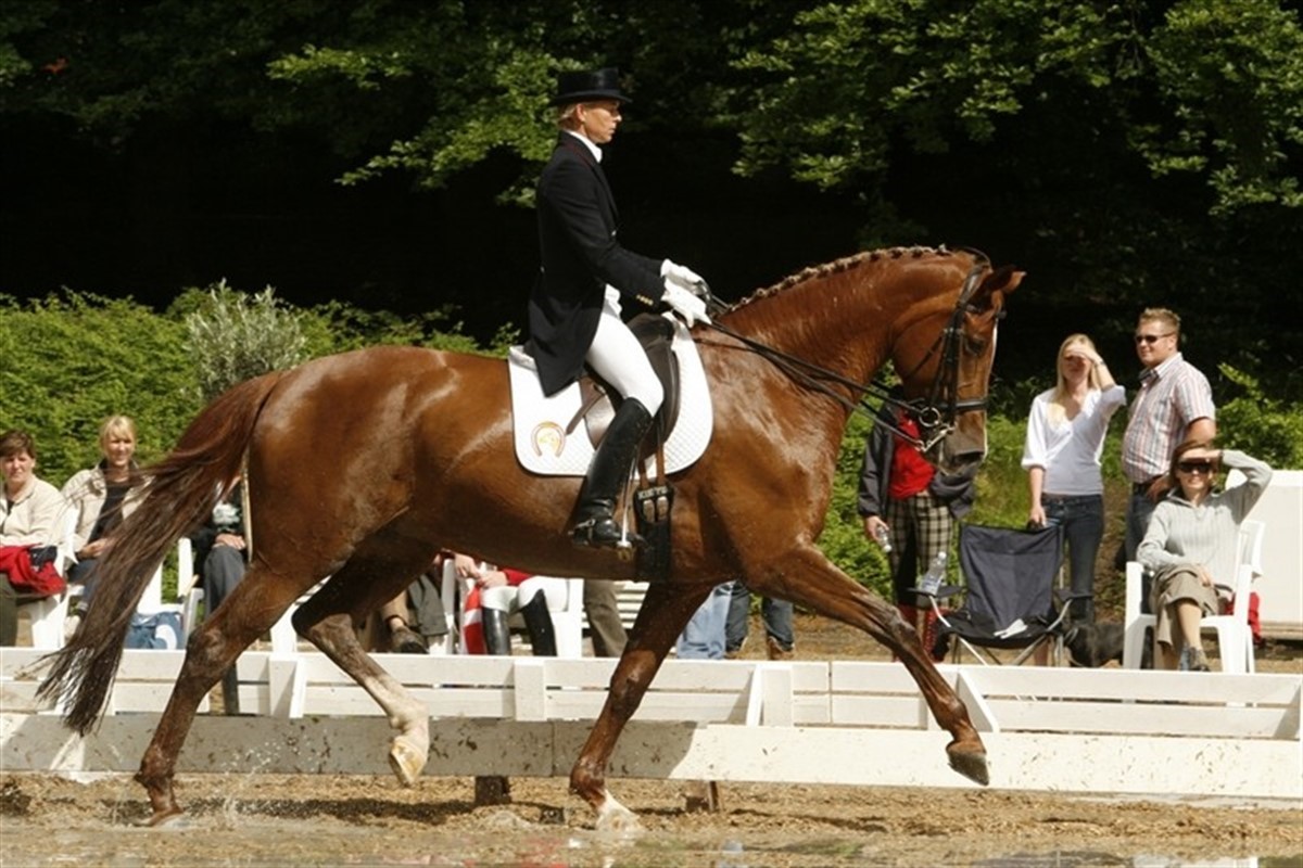 Som man kunne læse på Ridehesten.com onsdag i denne uge, er den tyskboende, danske dressurrytter Lone Jørgensen ved at være landsholdsaktuel, da hendes unge hest Donna Asana fortsat udvikler stærkt og meget stabilt. Lone mener, at hendes Dansk Varmblodshoppe e. Blue Hors Don Schufro/Diamant kan vise sig at blive hendes bedste hest nogensinde. Donna Asana er opdrættet af A.M. Blicher Jacobsen som "Solbakkegaards Asana" og er ud af Erna og Axel Jørgensens hoppestamme. Hun er født den 4. maj 2000 og fylder dermed først 8 år til foråret. Vi ønsker Lone Jørgensen held og lykke!