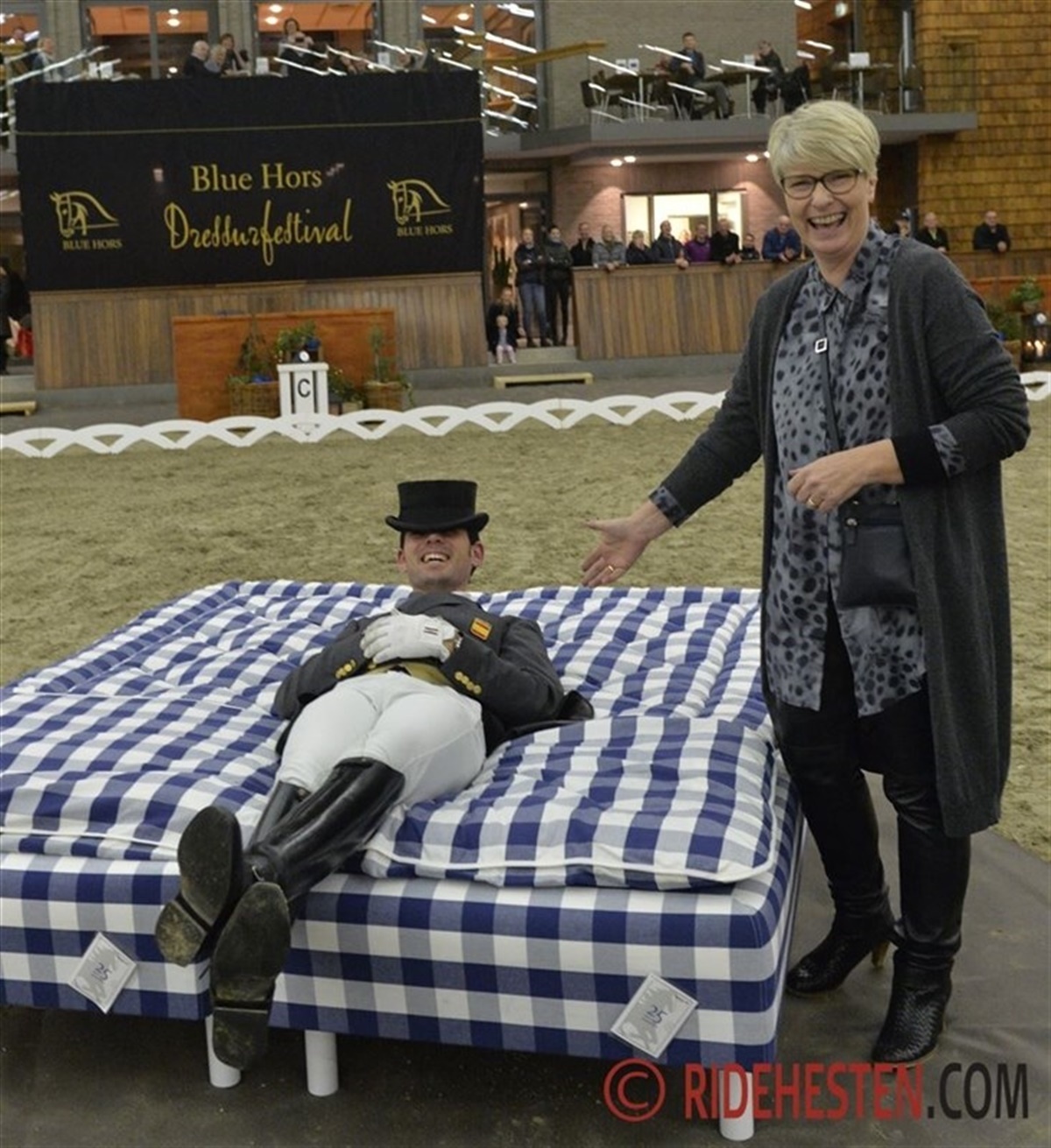 Severo modtog en særdeles imponerende ærespræmie i klassen, en Hästens seng til en værdi af over 30.000 kr. fra Sengeexperten i Vejle. Severo var særdeles glad for den flotte, håndlavede seng, og til publikums morskab var han frisk på at springe op i den ternede seng, der bl.a. laves af hestehår.