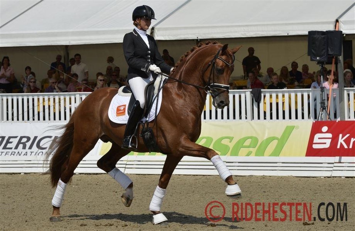 Fra konkurrencebanerne kender vi Annas heste Capriciella, Gørklintgaards Domello, Detroit, Holsteins Floridor og Rentino, og den unge, flerfoldige danmarksmester har nu fået ny hest i stalden. Det drejer sig om den 8-årige KWPN-hingst Dorado e. Krack C/ Rousseau/ Donnerhall, der er uddannet af Emmelie Scholtens fra den var 3 år.