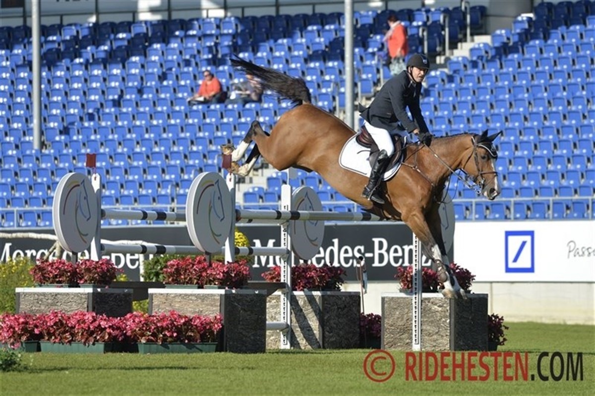 Andreas Schou er ankermand på det danske landshold, som i eftermiddag skal forsøge at nå ind i holdfinalen blandt de 10 bedste nationer. Det var derfor nogle bekymrende øjeblikke, da Allstar skred i en snæver vending til en Rolex lodret. Allstar var helt nede på det ene bagben, men Oklund-sønnen fik hurtigt genvundet balance, kom på benene og angreb forhindringen efter blot tre små galopspring, og var fejlfri. Parret holdt tempo på de resterende forhindringer og kom fejlfrit i mål. Desværre kostede hændelsen værdifuld tid i tidsspringningen, men Andreas sluttede dog på en tredjeplads. I lighed med gårsdagens åbningsspringning var det italienske Emanuele Gaudiano som sejrede på Caspar e. Casper foran den regerende europamester fra Herning, Roger Yves Bost.