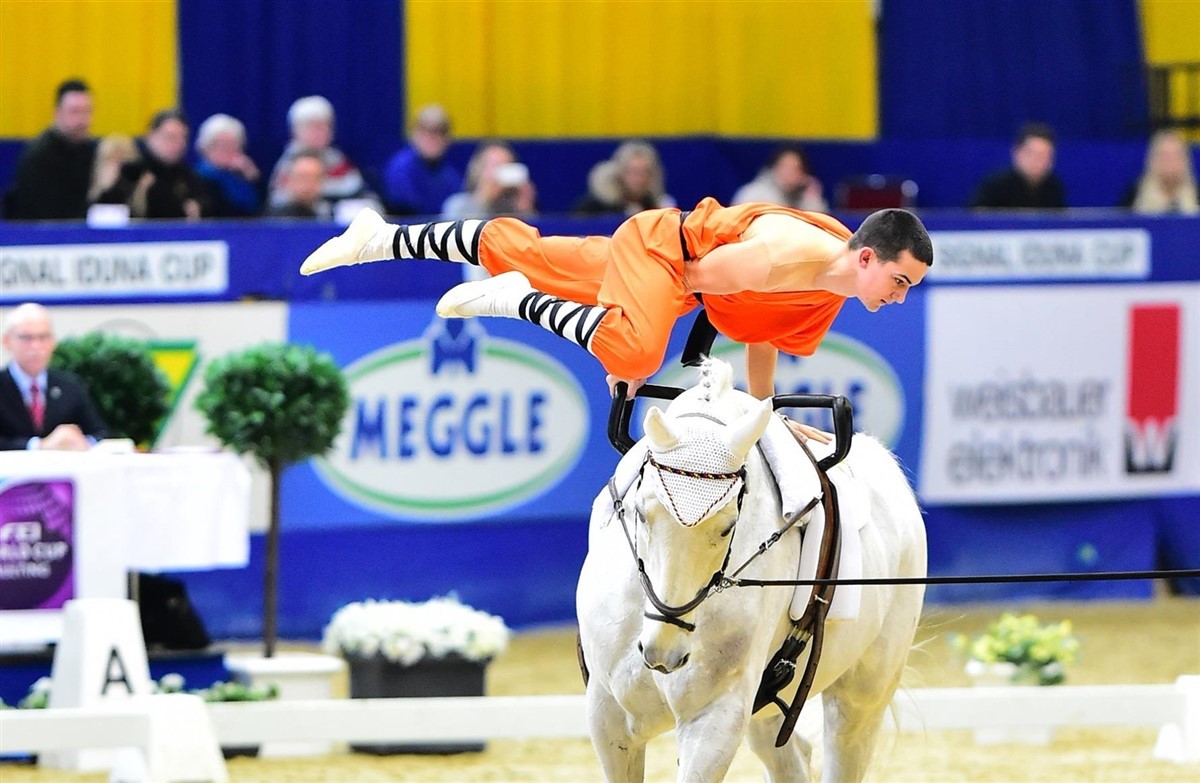 Søndag aften var der finale for World Cup individuel kvinder samt Par-de-Deux. Tyske voltigører Pia Engelberty and Torben Jacobs leverede en pragtpræstation både fredag og søndag i Par-de-Deux og løb derfor med titlen som guldvinder. Pia Engelberty havde desuden besluttet at dette World Cup-stævne skulle være hendes sidste og takkede farvel til sin karriere inden for voltige imens hun stadig er på toppen.
