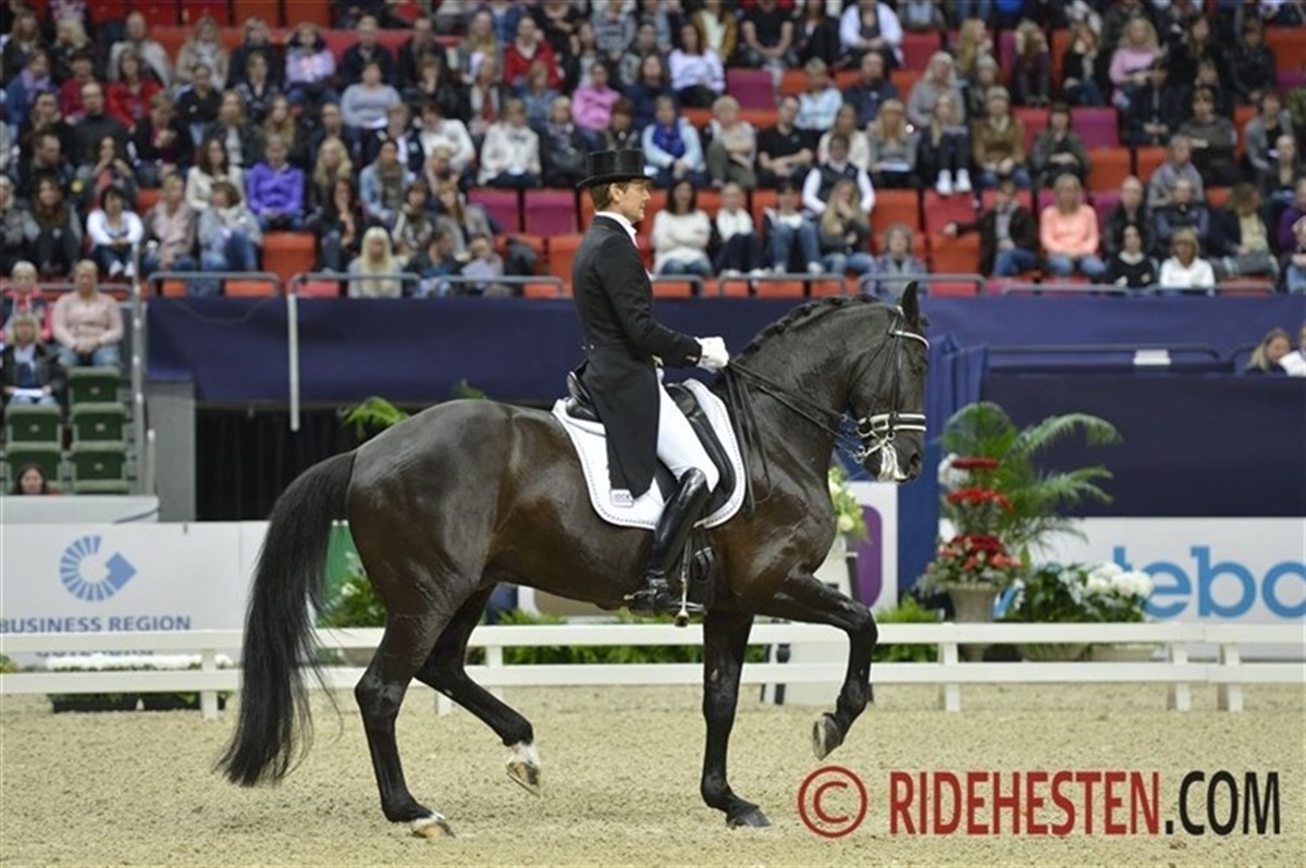 Det blev tyske Helen Langehanenberg og den tidligere UVM verdensmester Damon Hill NRV e. Donnerhall, der trak sig sejrrigt ud af dagens Grand Prix-klasse med 79,863% efter et harmomisk program hvor hingstens tre fremragende grundgangarter rigtig kom til deres ret - kombineret med en meget flot passage.