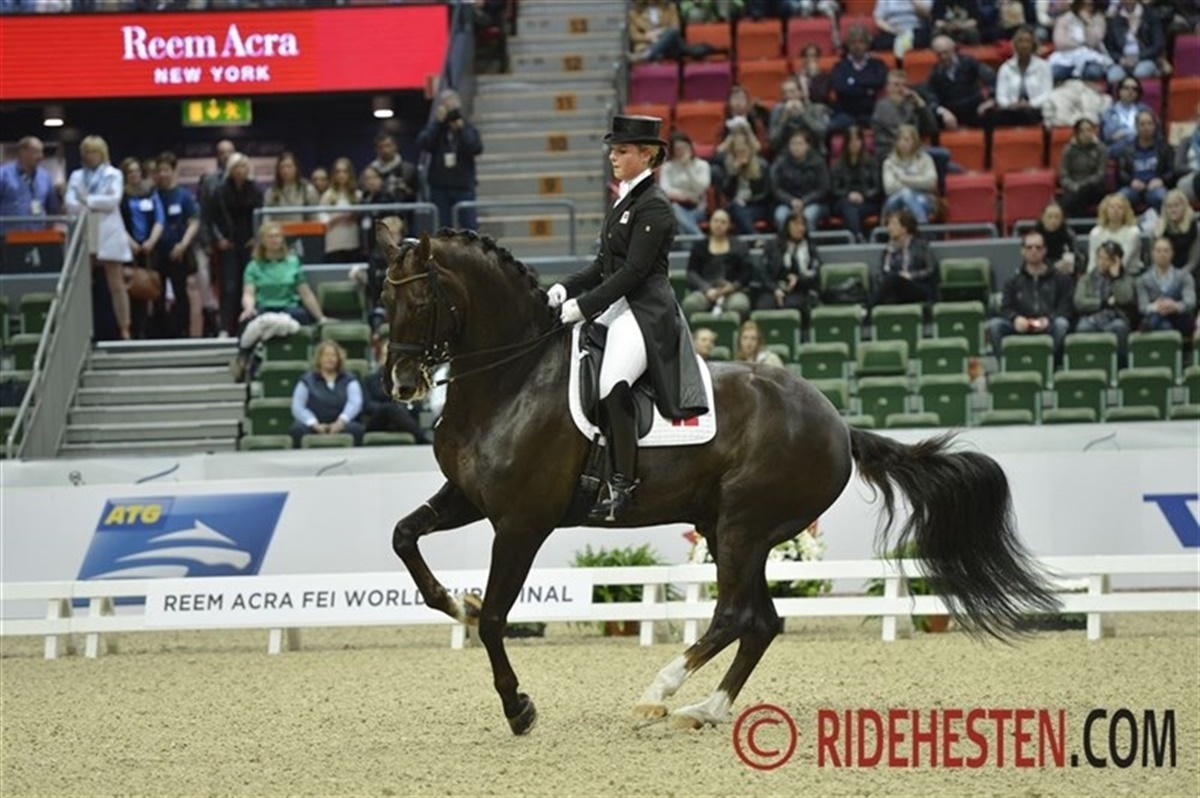 Svenske Tinne Vilhelmson-Silfvén og Don Aurello e. Don Davidoff fik næsten taget til at lette, da hun red sig ind på tredjepladsen efter smukke øgninger og flot passage samt et sikkert galopprogram vurderet til 77,432% Den regerende titelholder Adelinde Cornelissen lagde godt fra start på Jerich Parzival, og selvom han ikke skubber så godt af som ønsket i passagen, og i dag gik lidt med åben mund, var hun helt oppe nær den førende rytter, da Parzival pludselig rejste sig og snurrede rundt i den anden piaffe. 75,410% og en 4. plads i dagens konkurrence. Isabell Werth, verdens mest vindende dressurrytter ved mesterskaber med imponerede 29 medaljer heraf 21 af guld. Isabell og Don Johnson FRH e. Don Frederico fortrængte lige netop Anna Kasprzak fra femtepladsen. Anna og Donnperignon leverede et sikkert og meget harmonisk program, og eneste lille mislyd var et mindre kiks i serien af 2'er changementer. De opnåede 74,894%