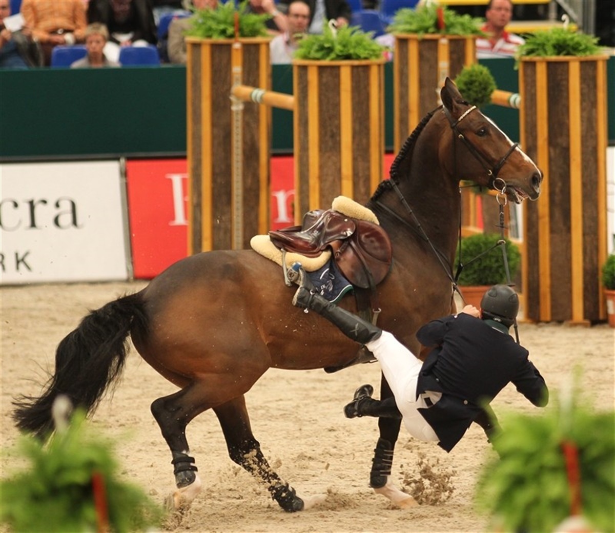 Der er efterhånden skabt tradition for, at enkelte springryttere må udgå allerede i første runde i World Cup-klassen. Sådan var det også i år, det var dog de prominente ryttere, der røg af hesten i Leipzig. Irske Denis Lynch blev skudt ud af sadlen af Abbervail van het Dingeshof, der sprang højt over oxeren på anden del af dobbeltspringet. Australske Edwina Alexander kom i store problemer på Rolex-lodretten, som Cevo Socrates pløjede igennem, og på det sidste spring blev også hun skudt ud af sadlen, men det lykkedes hende at lande på jorden efter at have passeret mållinjen. Meredith Michæls-Beerbaum havde sadlet fantastiske Shutterfly, der nu i sit 18. år fortsat springer smidigt og med overskud. Meredith fik dog slet ikke timet afsættet på en stor Rolex-oxer der var overbygget en bred vandgrav og det kostede nedslag til parret, som ellers red på banen som storfavoritter. Det blev dog til tysk sejr på hjemmebanen i Leipzig, præcis som ventet. At tyskerne var så stærke, som de viste i dagens konkurrence var en ren magtdemonstration. Vinder blev den tidligere europamester Marco Kutscher, som red på banen som femte rytter. På Cash red han gennem banen i opvisningsstil og stoppede tiden på 63,55 sekunder. Marcus Ehning og Sabrina fulgte op med en fejlfri runde i 63,79 sekunder og Christian Ahlmann fuldførte den tyske triple med tiden 64,03 til tredjepladsen.