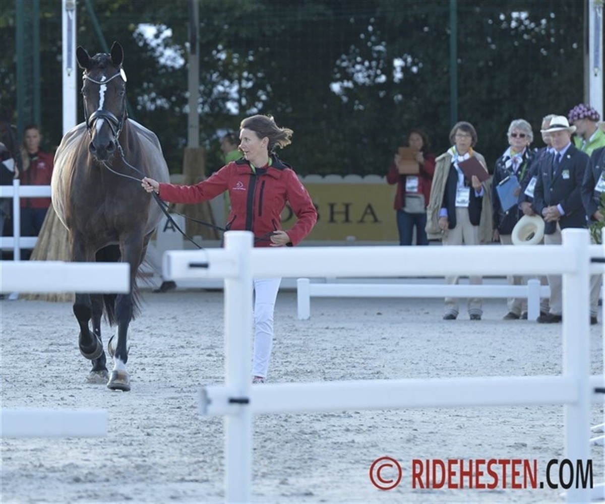 - Vi har kæmpet mod det på flere holdledermøder, men det er ikke lykkes os at få arrangørerne til at ændre på deres beslutning, fortæller holdleder Kimi Nielsen fra den danske dressurlejer. Det som har bragt sindende i kog er en stram tidsplan for dressuren, således at rytterne dels skal trave eller galopere ud af stadion efter deres ridt, men endnu værre: hestene skal gennem en lang sluse under tribunerne for at komme ind på stadion, og det er nu forlangt, at hestene skal stå klar i slusen, når den foregående rytter rider op ad midterlinjen til hilsen. Det betyder, at de heste som skal ind for at vise deres program, skal stå i slusen, når jublen skyller ned over den foregående rytter fra publikum. Og endnu værre, hestene må angiveligt ikke blive fulgt gennem slusen af hestepasser, træner eller andre, så rytter og hest er helt alene om at takle larmen fra publikum.