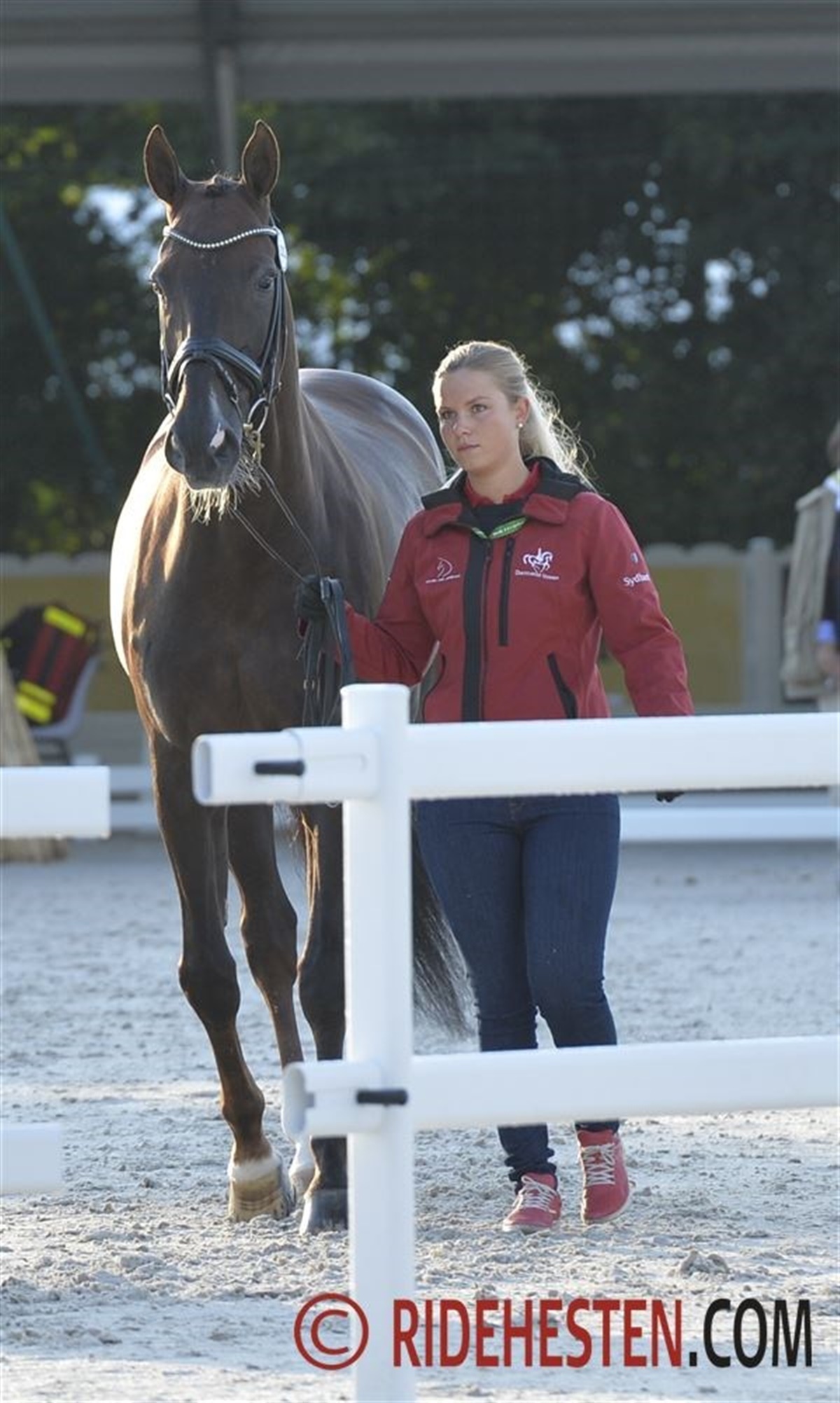 Kl. 8.10 travede det danske dressurhold op for dyrlægerne, samtlige heste opførte sig eksemplarisk på nær 17-årige Digby, der naturligvis skulle kaste noget med hovedet og hoppe lidt rundt på den sidste travetur op mod dyrlægerne. Alle danske heste gik glat gennem dyrlægekontrollen. Så det er første hurdle vel overstået.