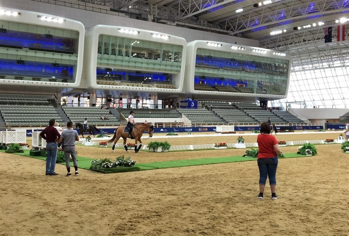 Det var dressurrytternes første dag på banen i Doha, og de fik i den grad vist de rød-hvide farver. Cathrine Dufour var bedste dansker på banen i dagens Grand Prix. Sammen med Atterupgårds Cassidy e. Caprimond/Donnerhall(opdr. Atterupgård) red ekvipagen til intet mindre end 76.820%. Hun var lige i hælene på verdensranglistens nr. 1 Isabell Werth med hesten Don Johnson Frh, der red til en flot score på 77.600%.